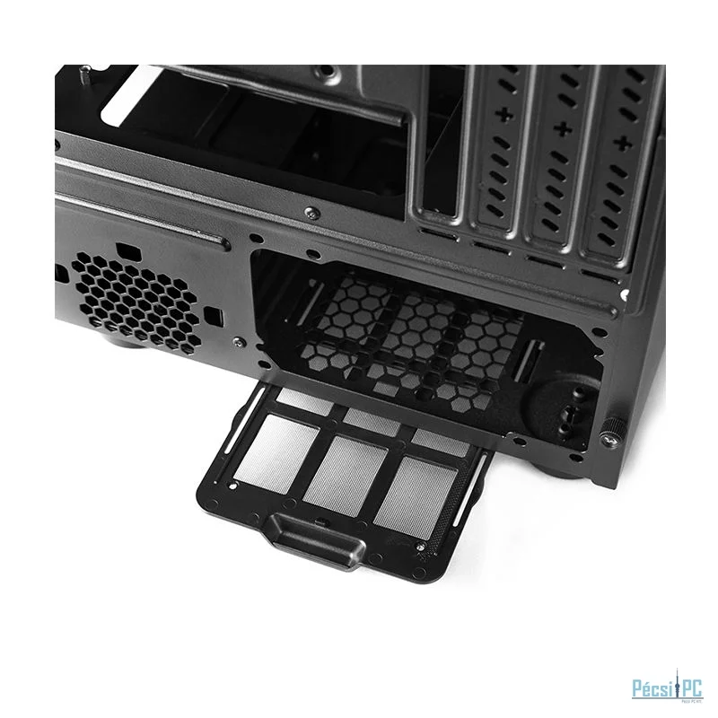 microATX, Black, 1x5,25", 2x3,5", 3x2,5", 2xUSB3.2, Audio, Táp nélkül, 390x265x295mm