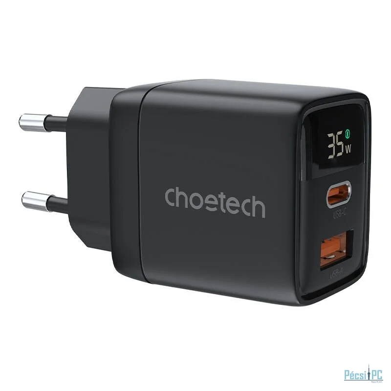 Adapter, 1xUSB-A, 1xUSB-C, 35W, QC, PD, Black