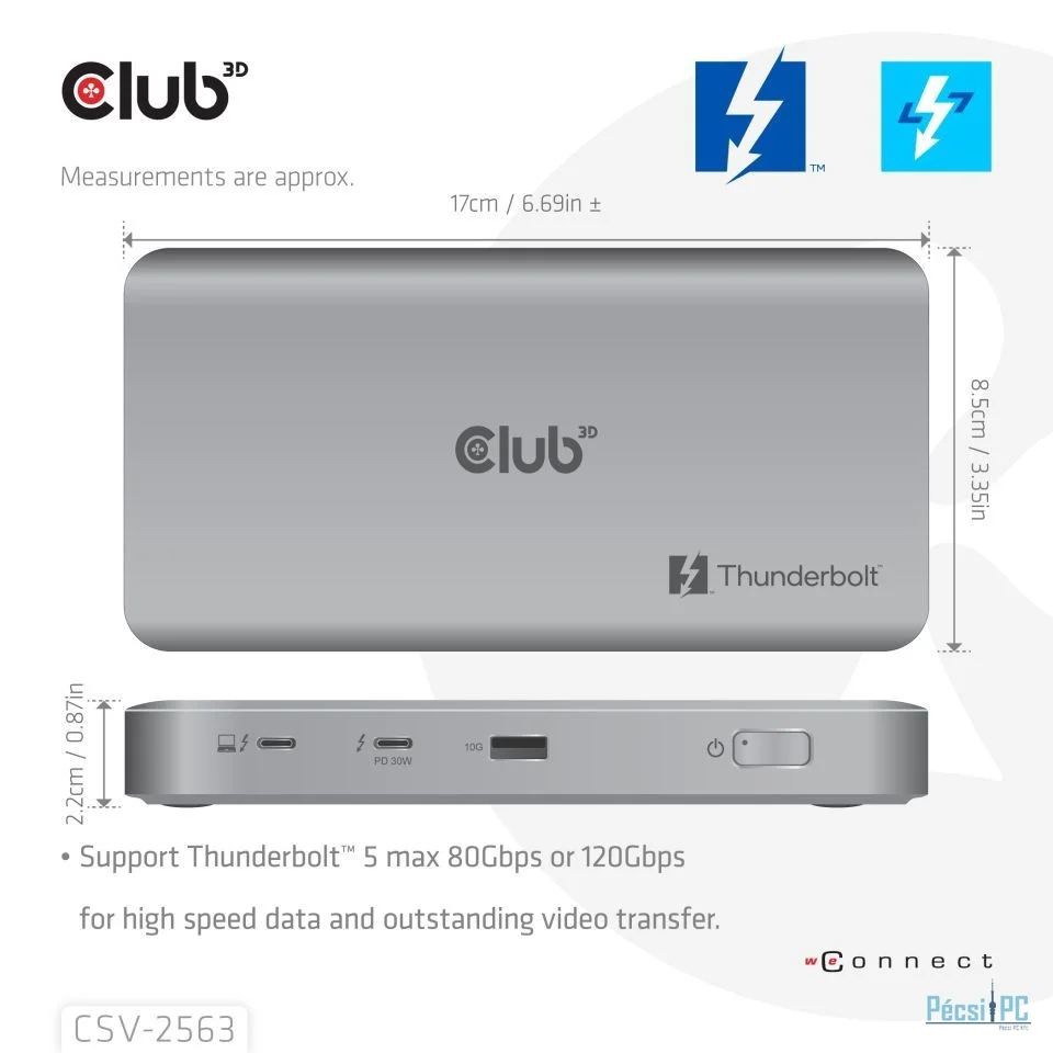 Club3D 5-1 Thunderbolt 5 Hub Triple video 5K60Hz Thunderbolt Share Certified 180W