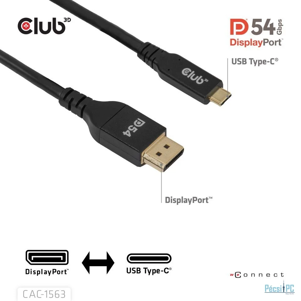 Club3D CAC-1563 USB-C to DisplayPort 2.1 DP54 Bi-Directional Cable 8K120Hz 2m Black