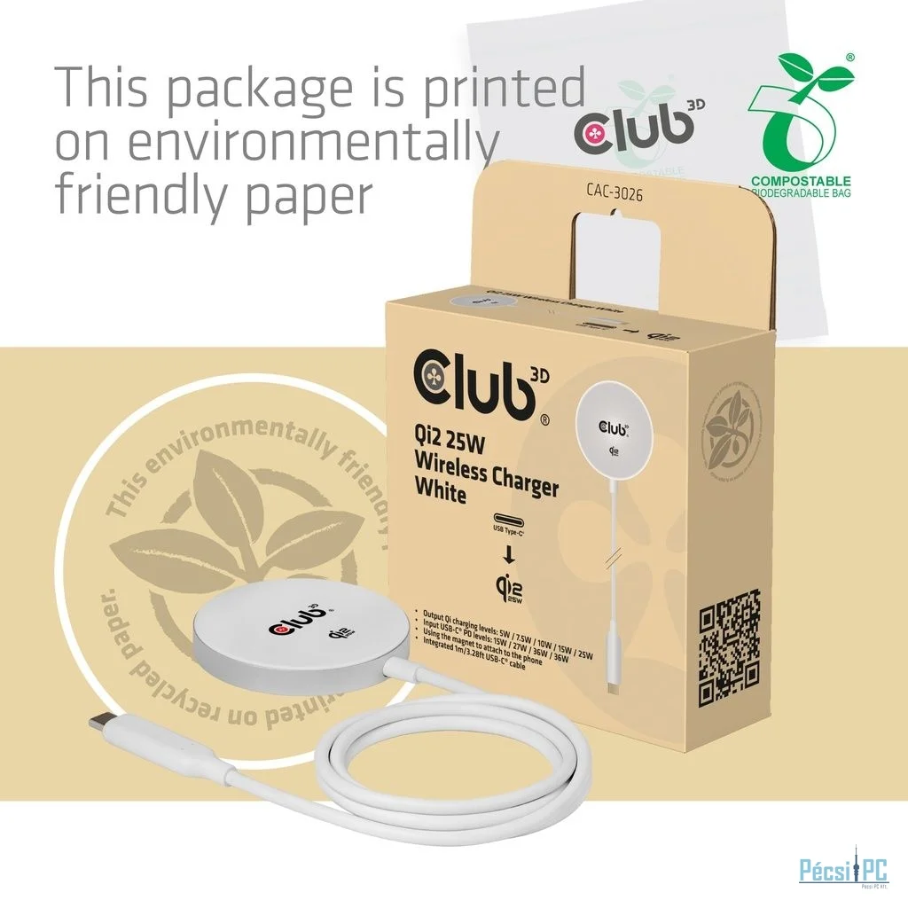 Club3D Club3D Ladegerät wireless Qi2 USB-C 25Watt, weiß retail