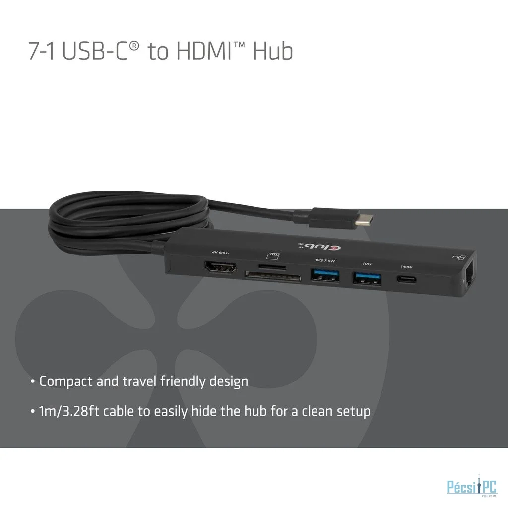 Club3D CSV-2555 7-1 USB-C to HDMI Hub 4K60Hz PD3.1 140W 1m