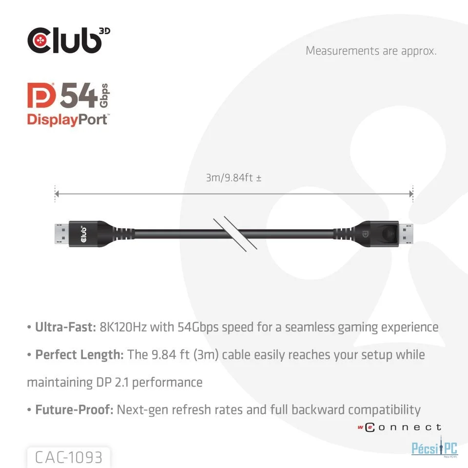 Club3D DisplayPort 2.1 DP54 VESA Certified Cable 8K120Hz 3m Black
