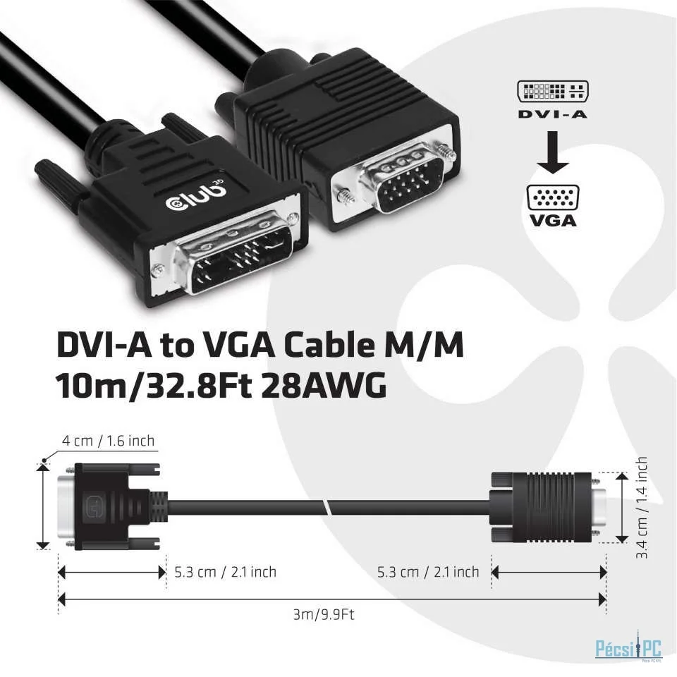 Club3D DVI-A (Analog VGA) to VGA cable 3m Black