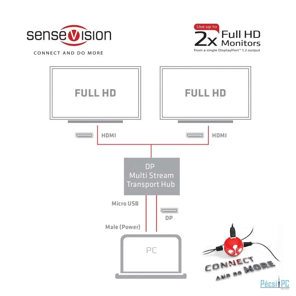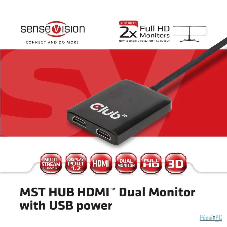 Club3D Multi Stream Transport Hub DisplayPort 1.2 Dual Monitor to HDMI