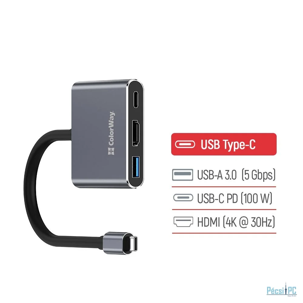 ColorWay CW-HUB08 USB-C 3-in-1 Docking Station