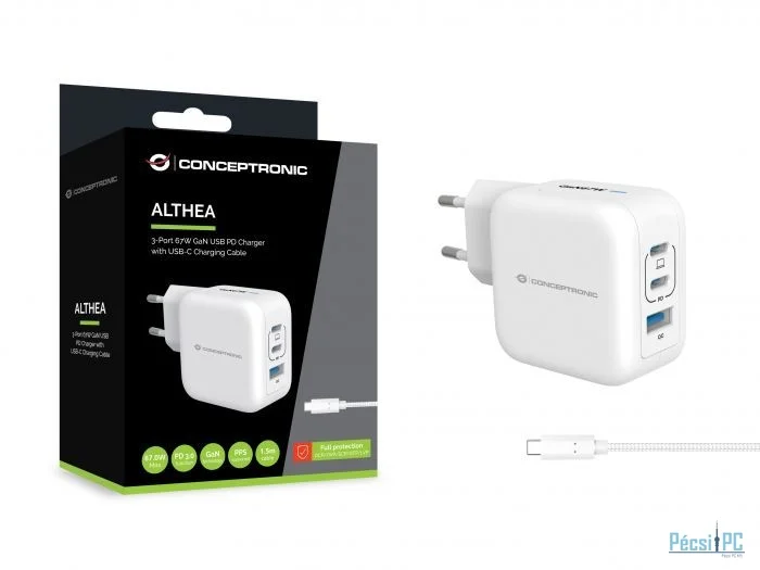 Adapter, 1xUSB-A, 2xUSB-C, Kábel csatlakozó USB-C , 5V/9V/12/15/20V, 3A, 45W, QC, PD, White