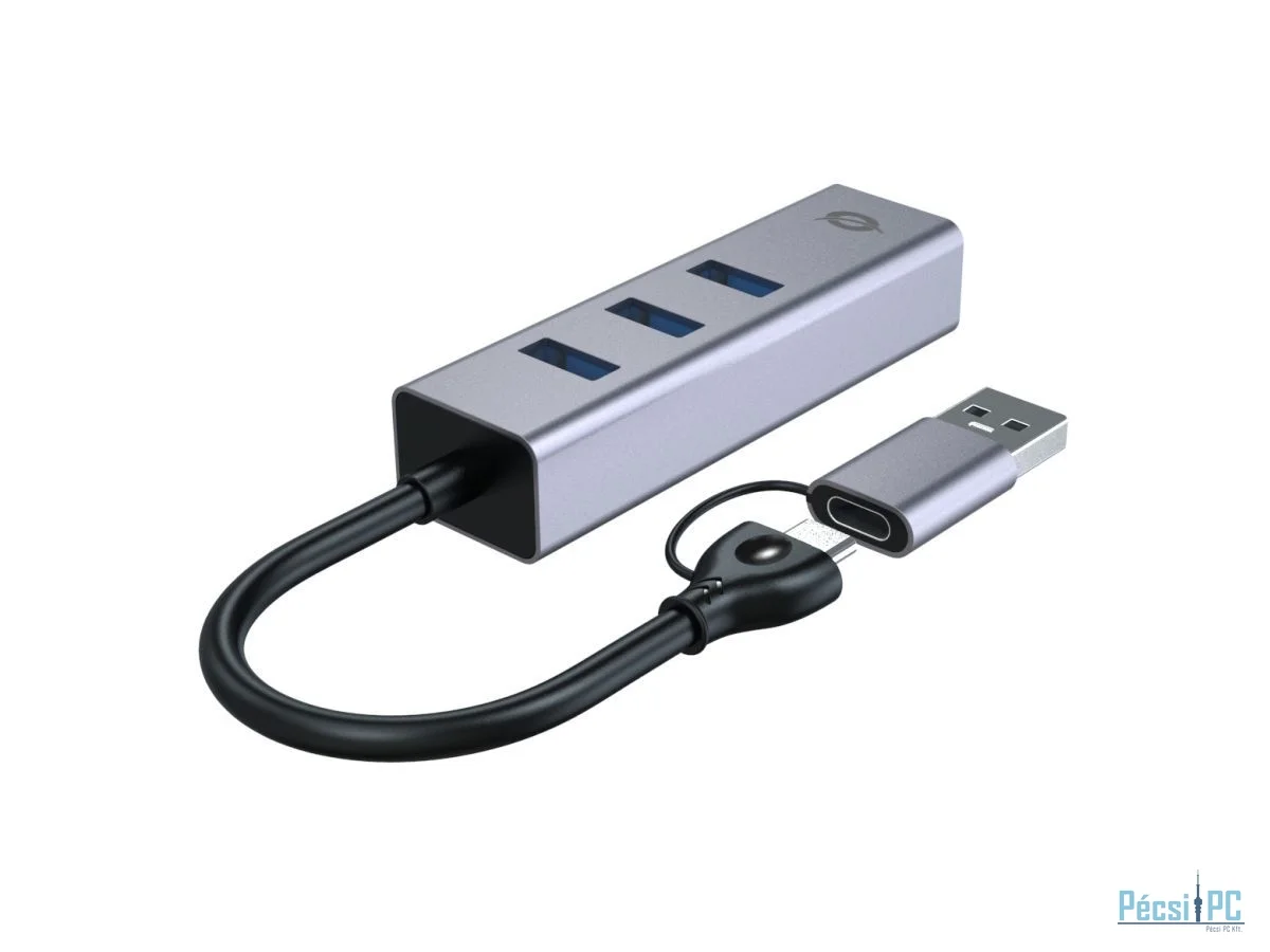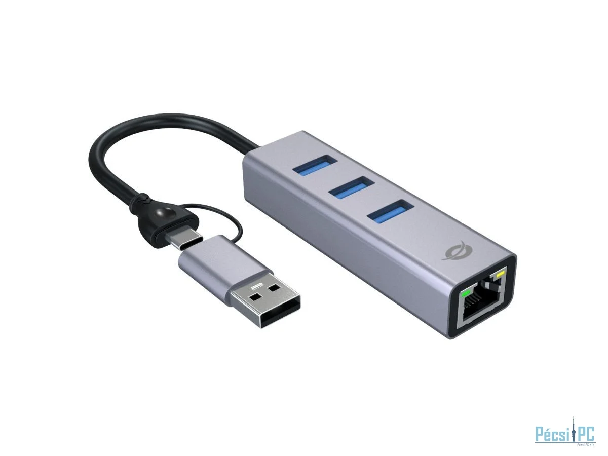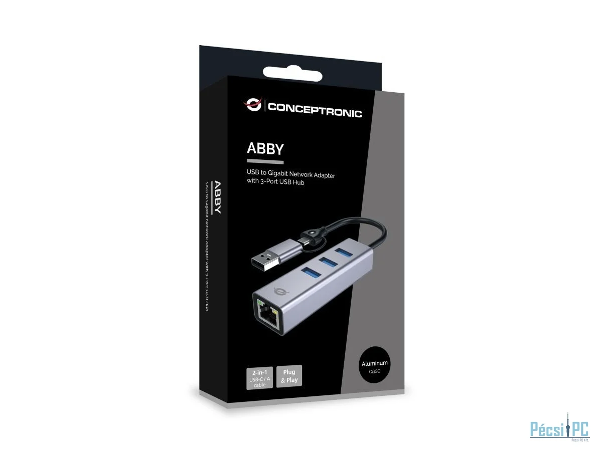 Conceptronic ABBY25G USB-C to Gigabit Network Adapter with 3-Port USB Hub