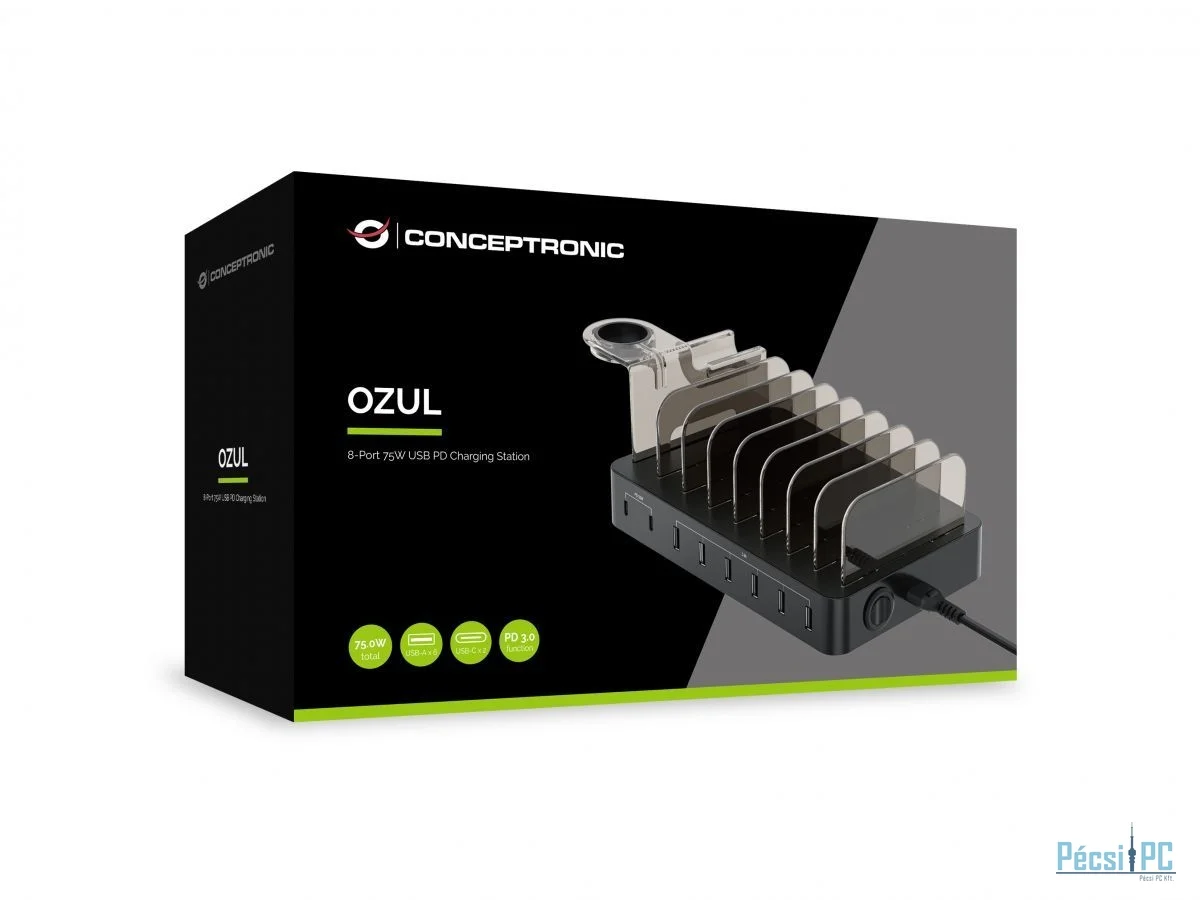 Conceptronic OZUL02B 75W 8-Port USB PD Charging Station