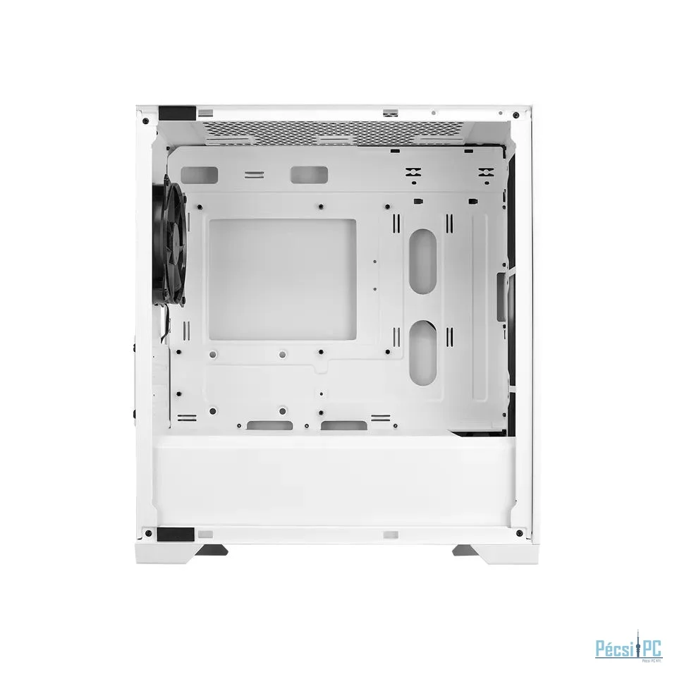microATX, White, 1x3,5", 2x2,5", 1xUSB3.2, 1xUSB Type-C, Audio, Táp nélkül, 390x203,5x430mm, Ventilátor:1x12cm, Tempered glass window