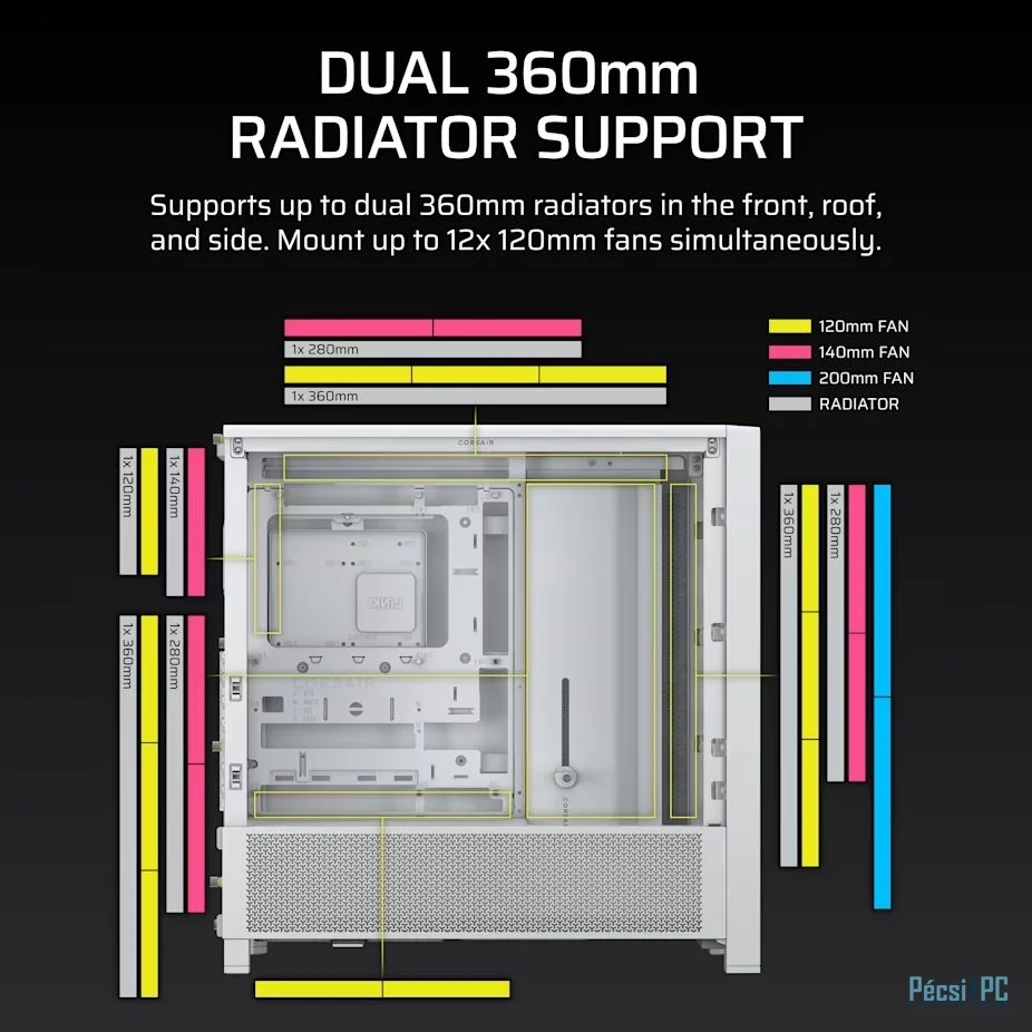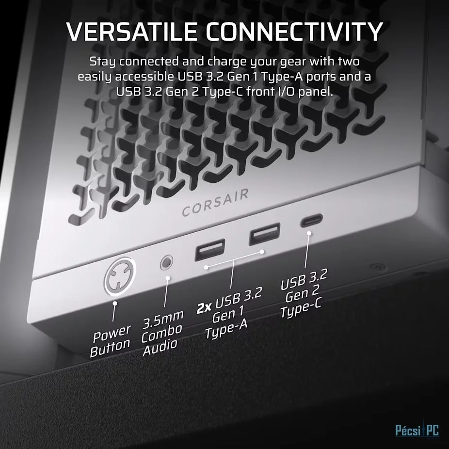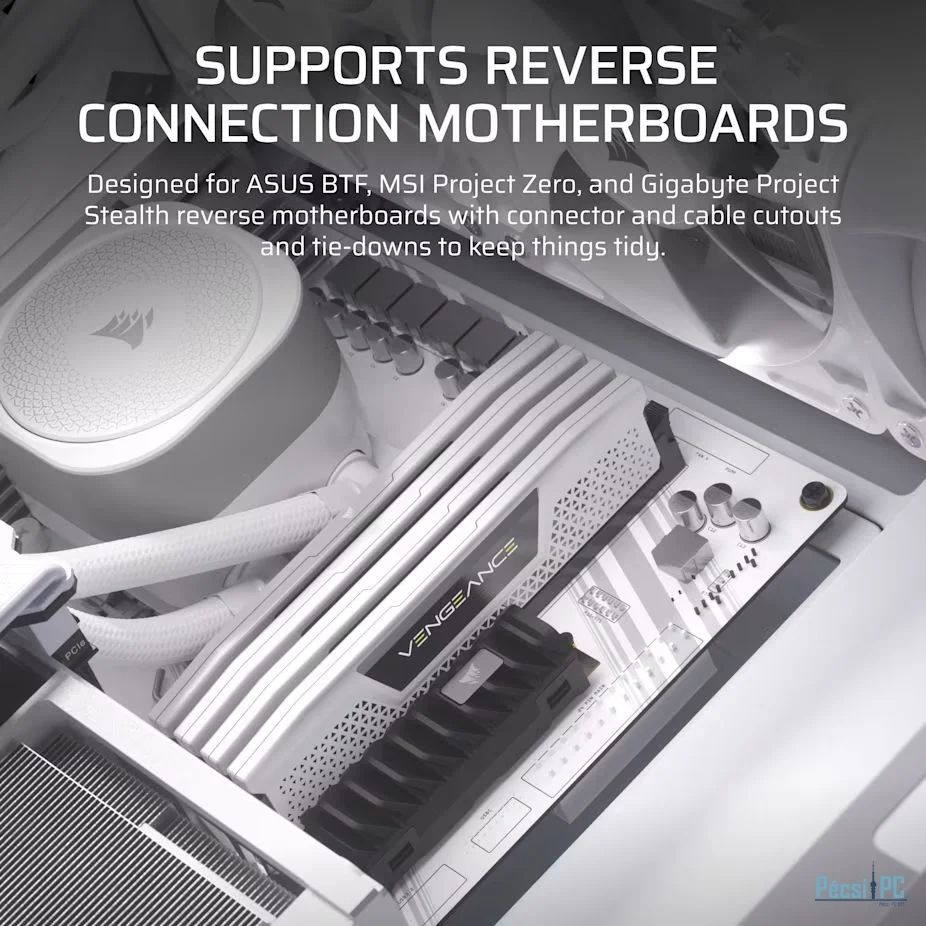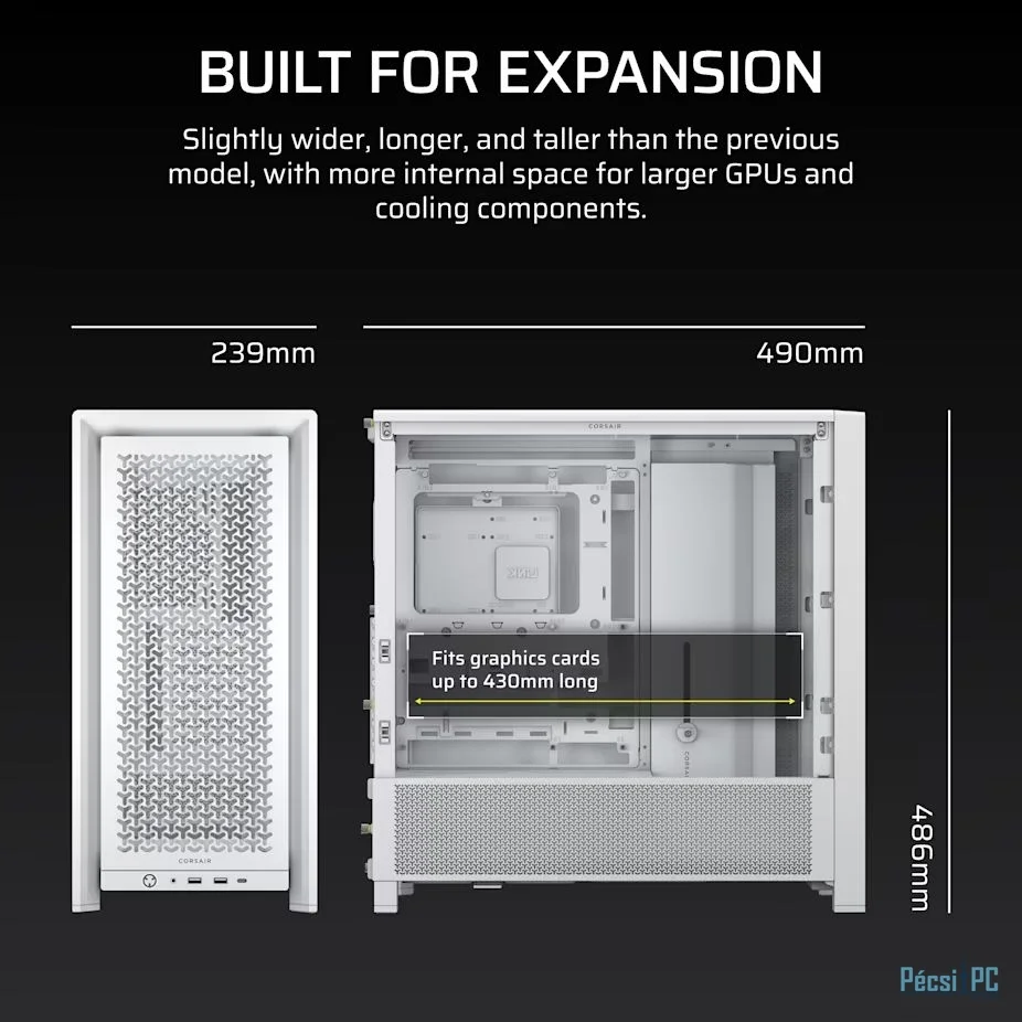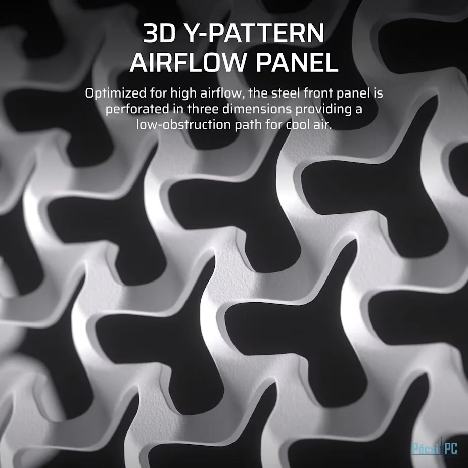 E-ATX, White, 2x3,5", 4x2,5", 2xUSB3.2, 1xUSB Type-C, Audio, Táp nélkül, 486x490x239mm, Tempered glass window, Gamer