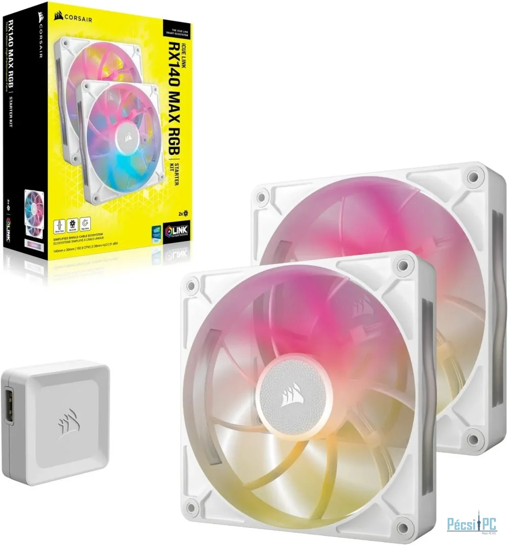 Corsair iCUE LINK RX140 MAX RGB 140mm PWM Thick Fans Starter Kit White (2-Pack)