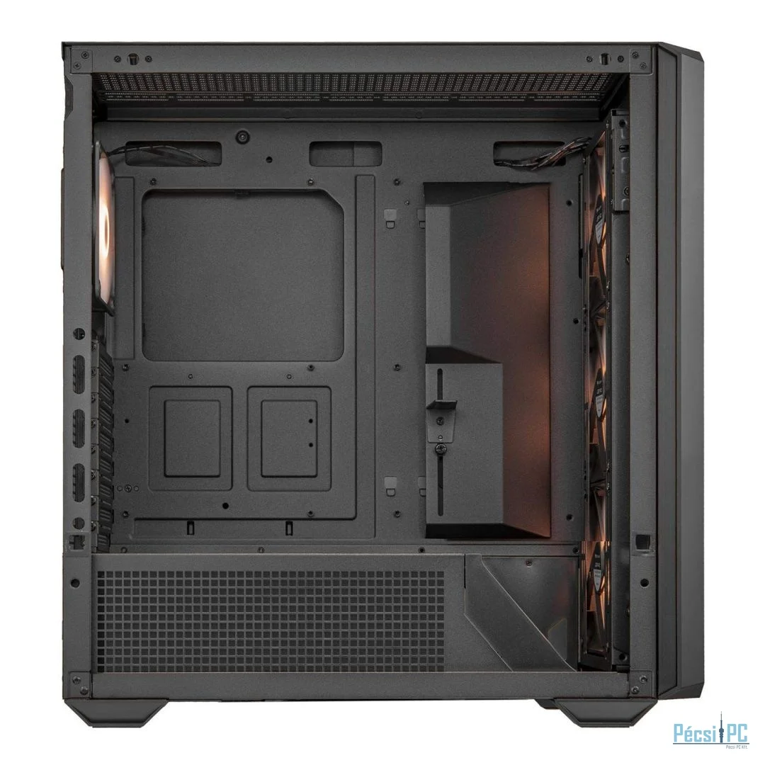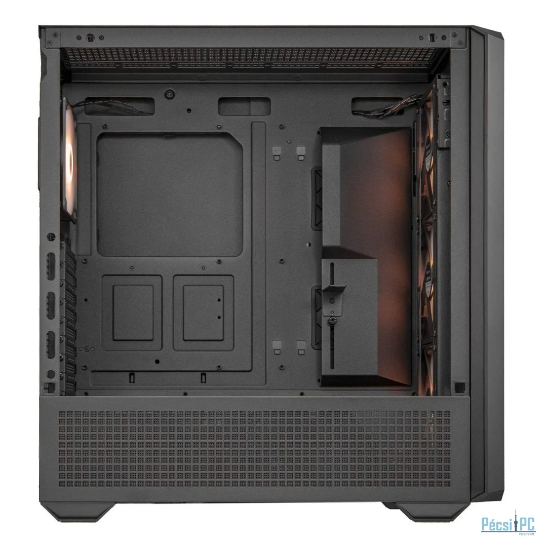 E-ATX, Black, 1x3,5", 3x2,5", 2xUSB3.0, 1xUSB Type-C, Audio, Táp nélkül, 515x478x235mm, Ventilátor:3x14cm, 1x12cm, Tempered glass window, RGB, Gamer