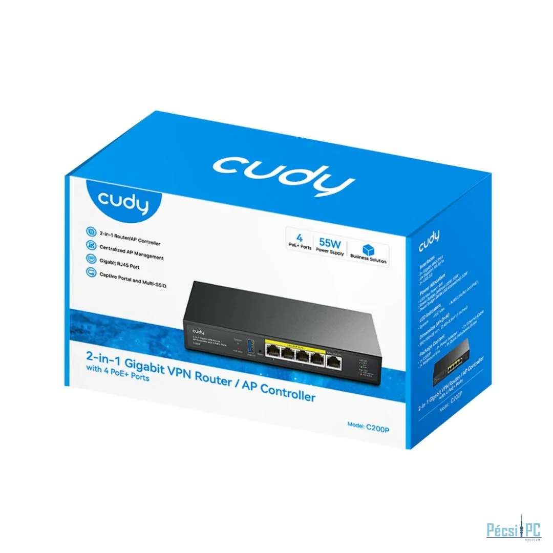 Cudy C200P 2-IN-1 Gigabit VPN Router / AP Controller with 4 PoE+ Ports
