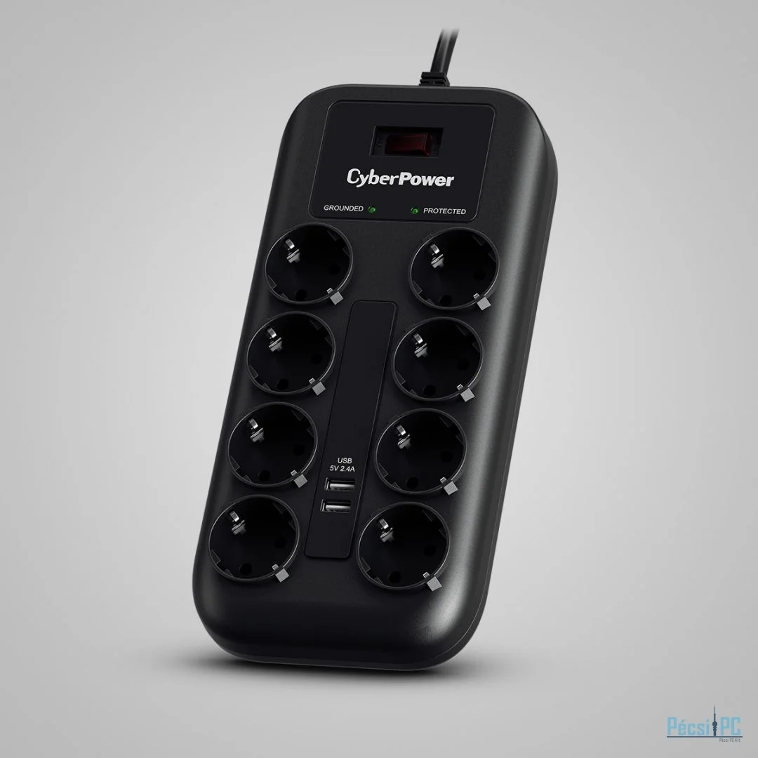CyberPower P0820SUF0-DE Túlfeszültségvédő Kapcsolóval 8DIN 1,8m Black