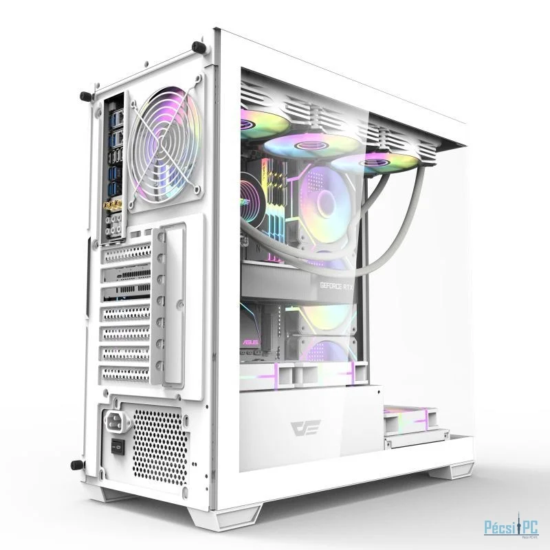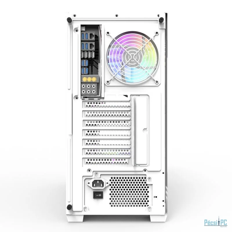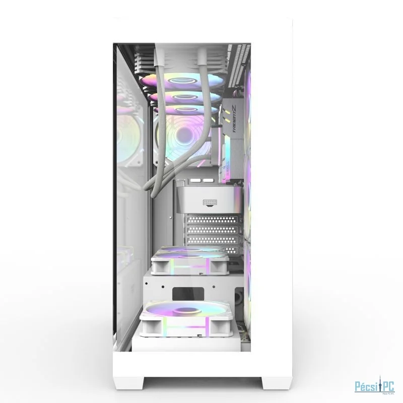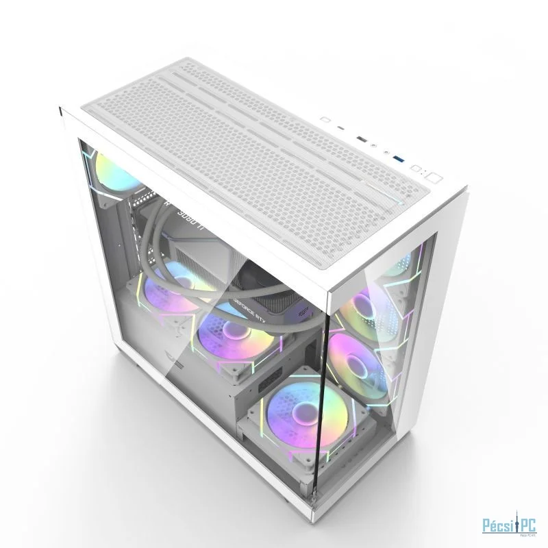 ATX, White, 2x3,5", 2x2,5", 1xUSB2.0, 1xUSB3.0, 1xUSB Type-C, Audio, Táp nélkül, 434x218x454mm, Tempered glass window