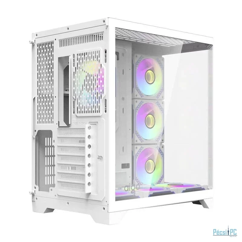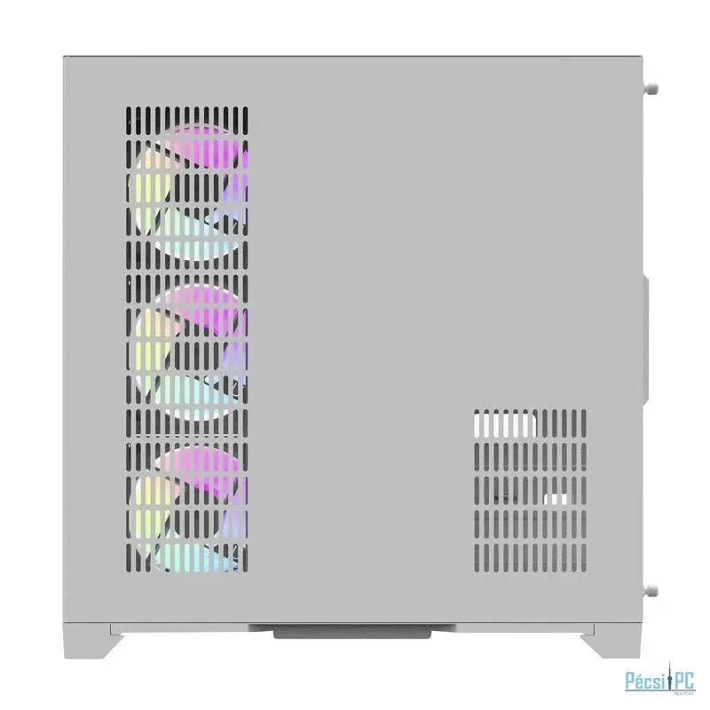 ATX, White, 2x3,5", 3x2,5", 1xUSB2.0, 1xUSB3.0, Audio, Táp nélkül, 435x418x280mm, Tempered glass window, Gamer