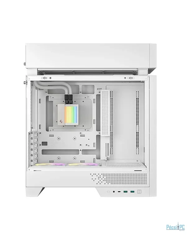 ATX, White, 2x3,5", 2x2,5", 2xUSB3.0, 1xUSB Type-C, Audio, Táp nélkül, 534x458x235mm, Ventilátor:5x12cm, Tempered glass window, RGB, Gamer