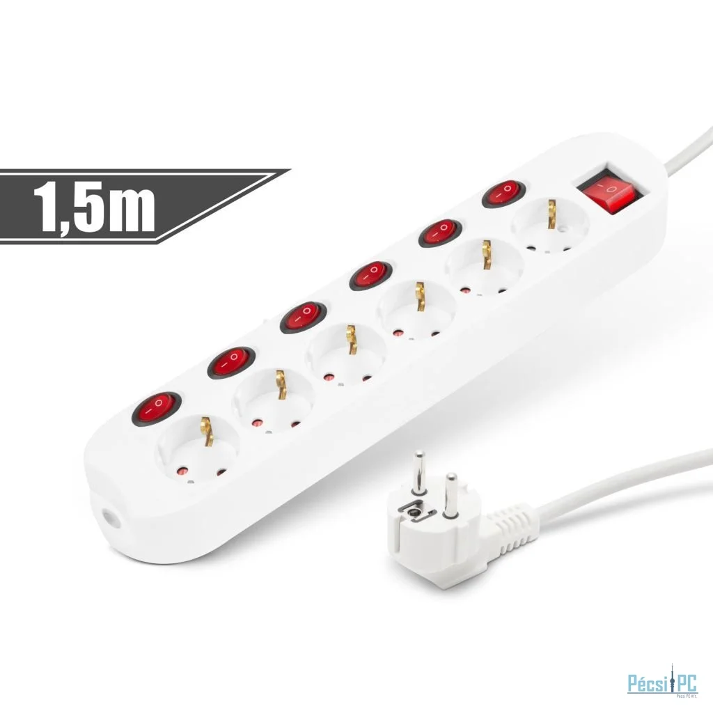 Elosztó, 6xDIN, Kábel1,5m, Kapcsoló, White