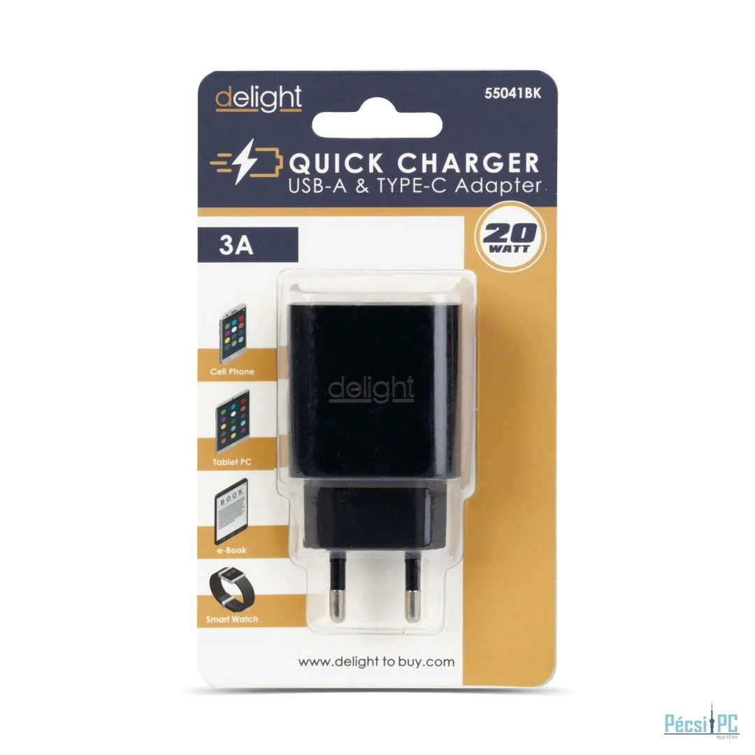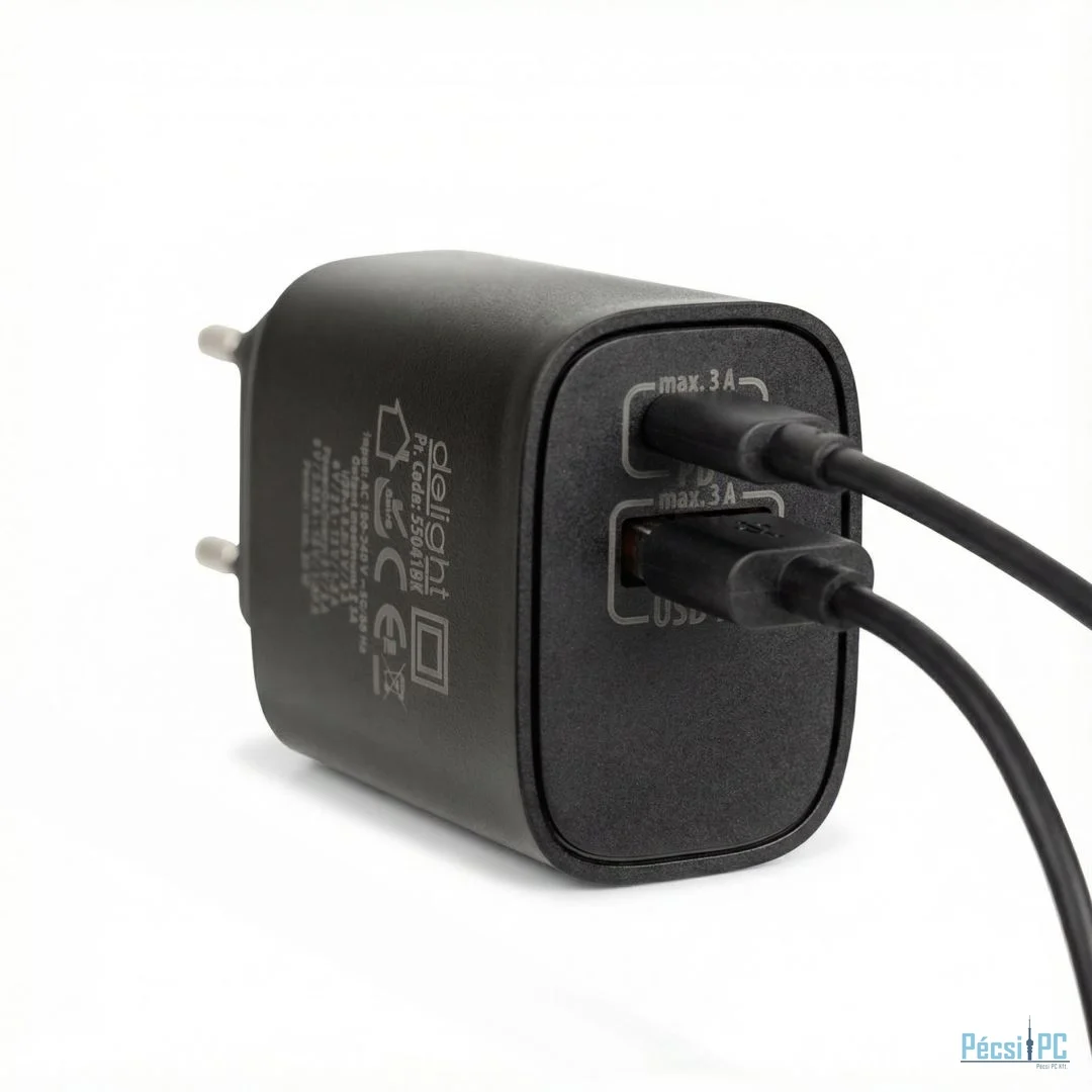 Delight USB Type-C + USB A PD20W Fast charger Black