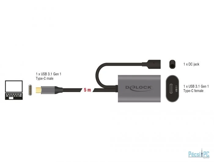 DeLock Active USB 3.1 Gen 1 extension cable USB Type-C 5m Black