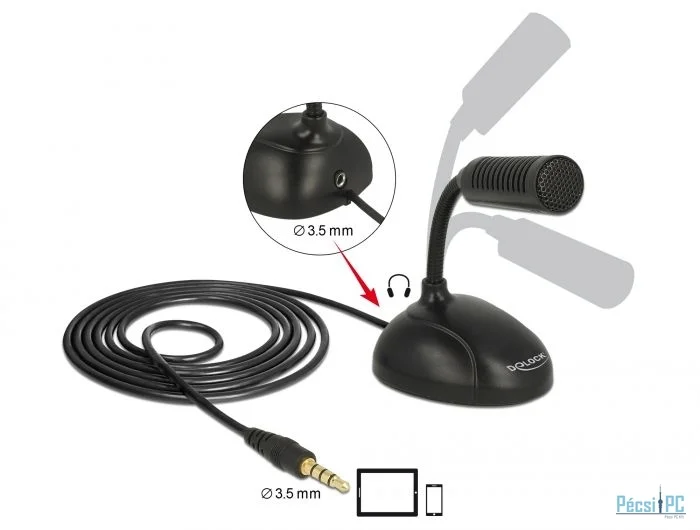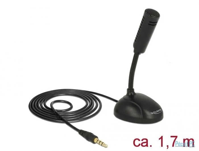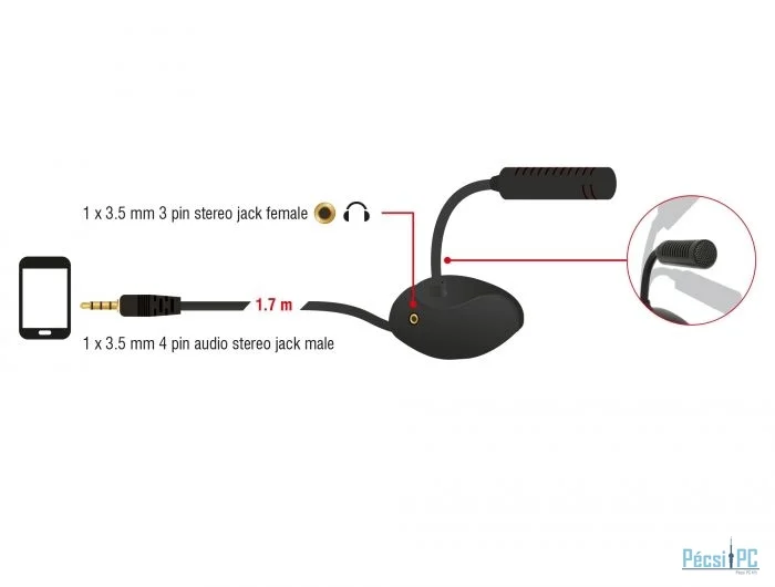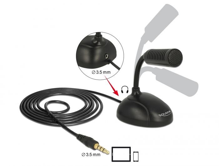 DeLock Condenser Microphone Omni-Directional for Smartphone / Tablet with gooseneck 3.5 mm 4 pin stereo jack male + 3.5 mm stereo jack female