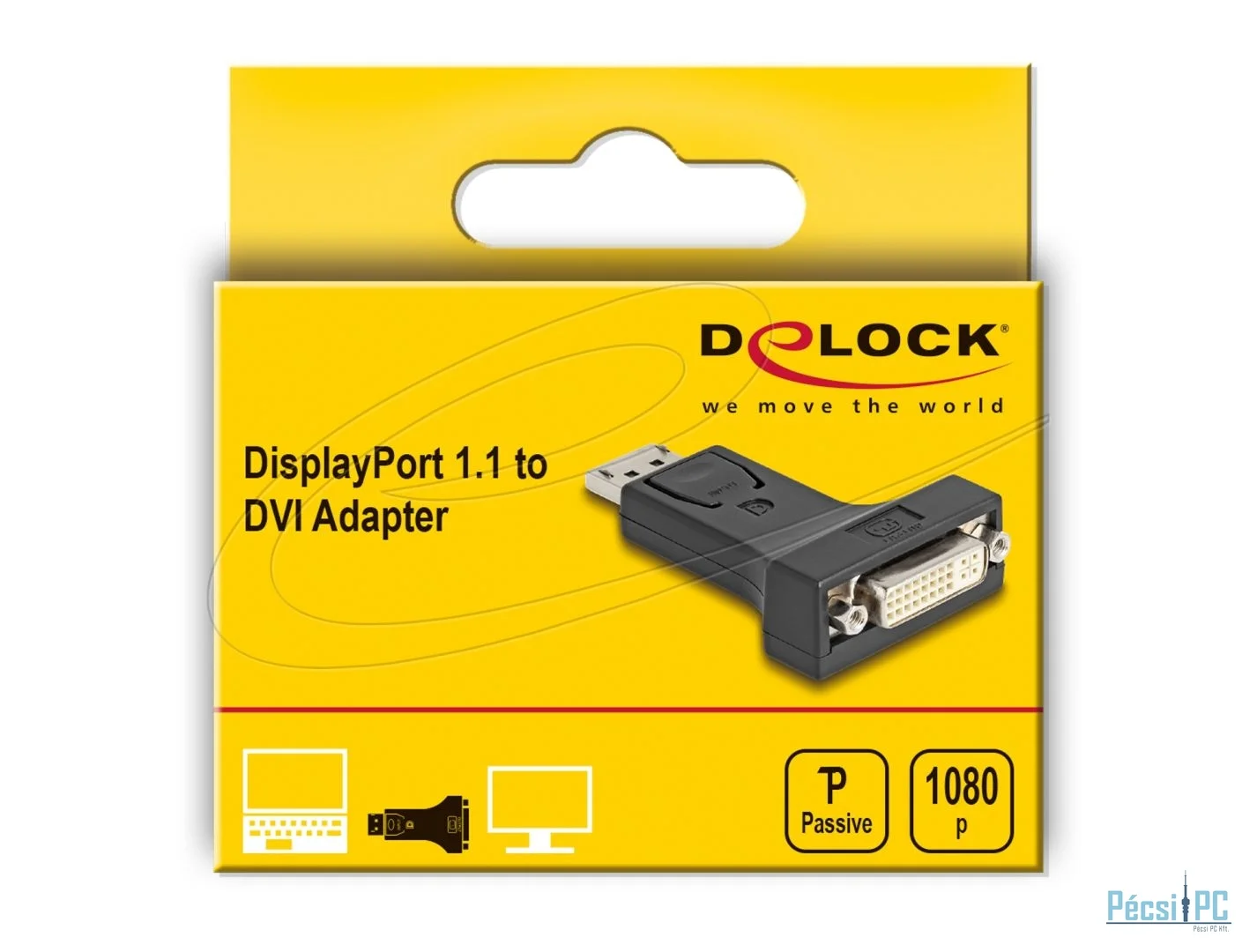 DeLock DisplayPort 1.1 male to DVI-I (Dual Link) (24+5) female Passive Adapter Black