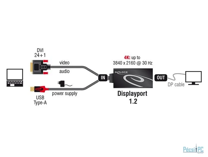 DeLock DVI-D (Dual Link) (24+1) male > Displayport 1.2 female Adapter Black