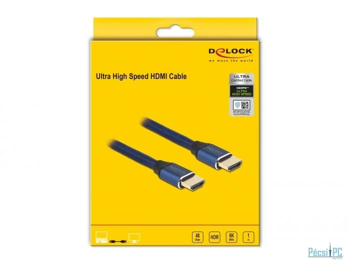 Ez a kiváló minőségű Delock Ultra nagy sebességű HDMI kábel a HDMI interfészen keresztül összeköthet eszközöket, például televíziókat, Blu-ray lejátszókat, monitorokat vagy kivetítőket. A 48 Gb/sec maximális sávszélesség támogatásával a tartalom 8K Ultra HD (7680 x 4320 60 Hz-en) felbontással jeleníthető meg.