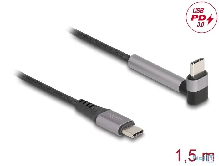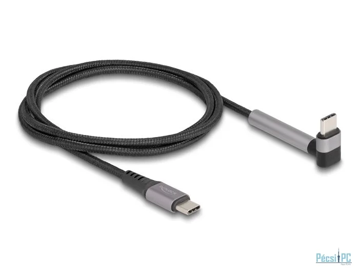USB kábel, USB-C, USB-C, USB2.0, Male/Male, 1,5m, Black, Töltő és adatkábel, 90 fokos, Szövetborítás
