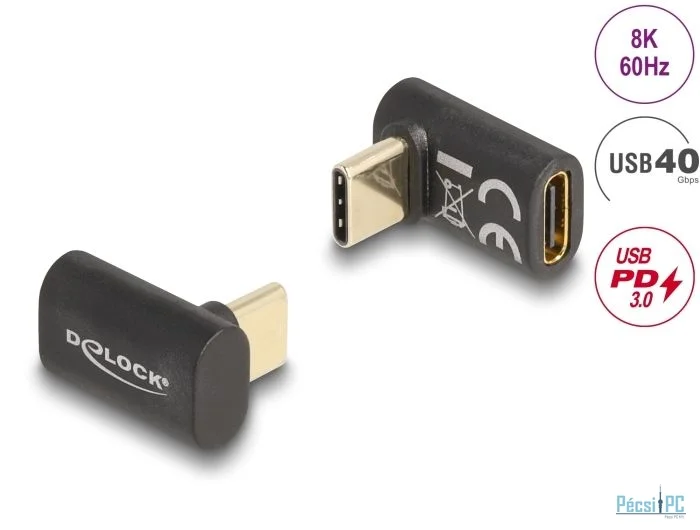 USB adapter, Adapter, USB-C, USB-C, Ultra HD 8K, USB3.0, Male/Female, Black, 90 fokos