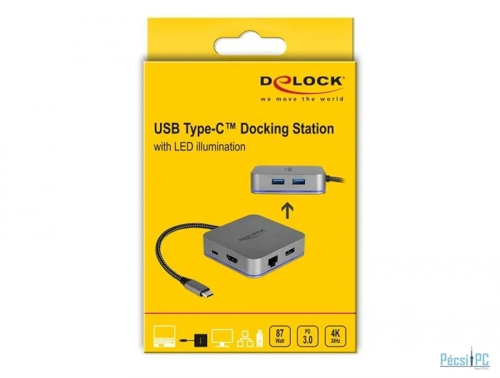DeLock USB Type-C Docking Station for Mobile Devices 4K - HDMI / Hub / LAN / PD 3.0 with LED illumination