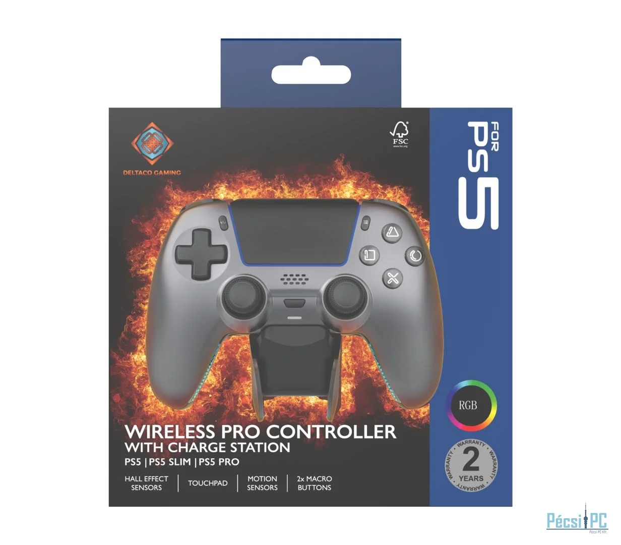 Deltaco Wireless Pro PS5 Gamepad with Charge Station Steelgray