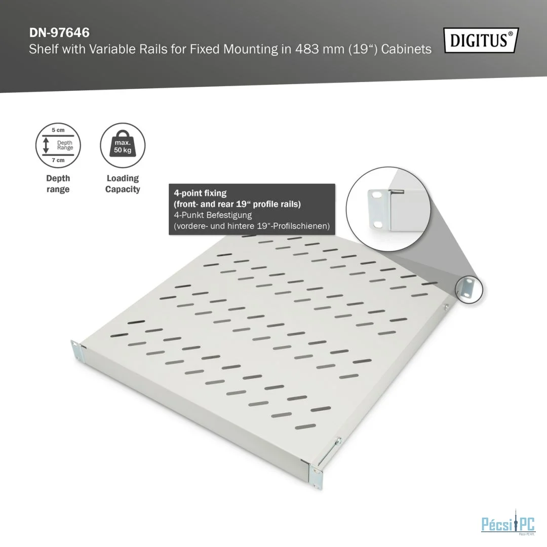 Digitus 1U fixed shelf for 800mm depth racks 44x482x500mm adjust. 500-700mm depth Grey
