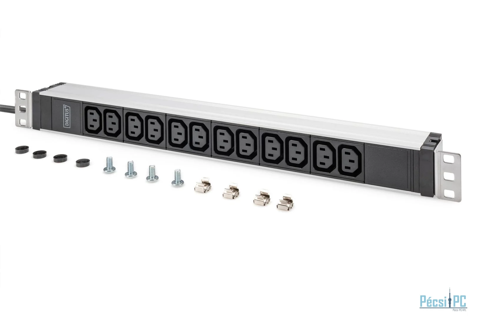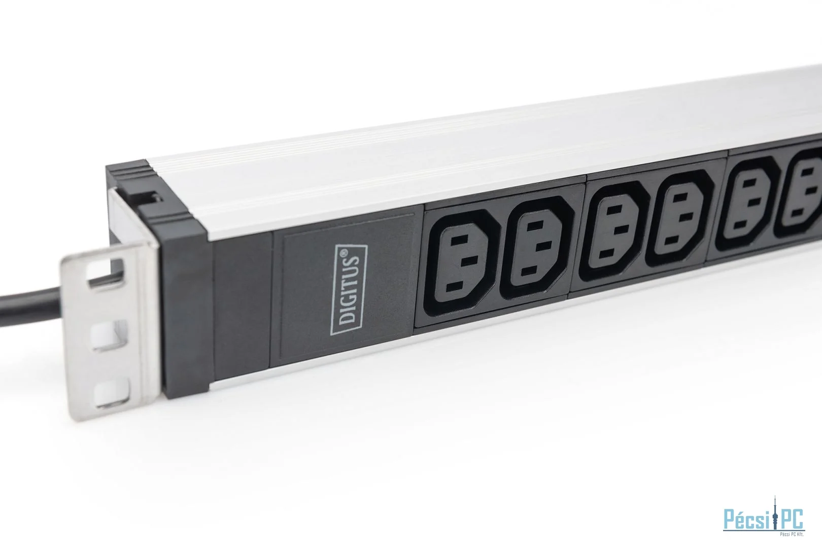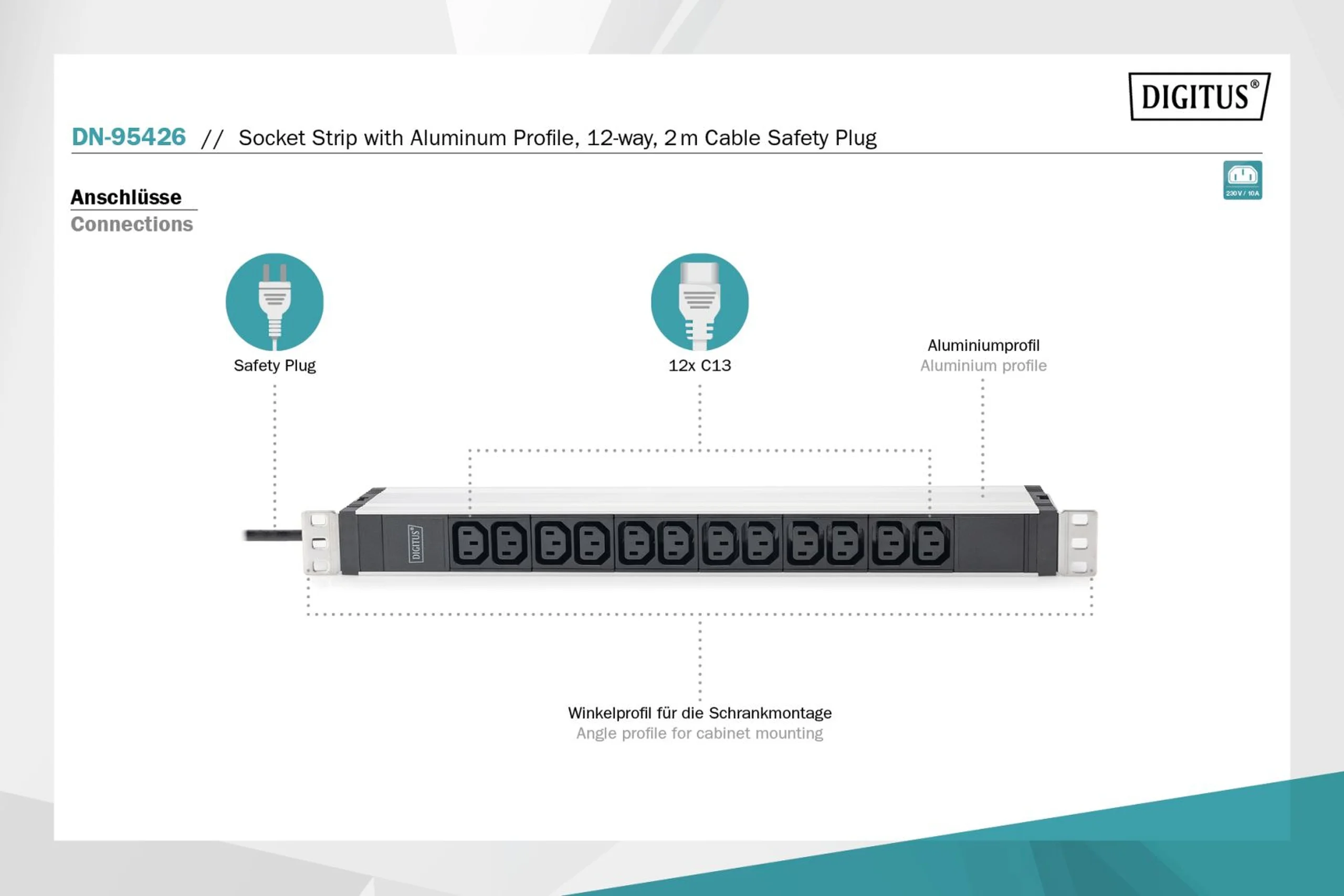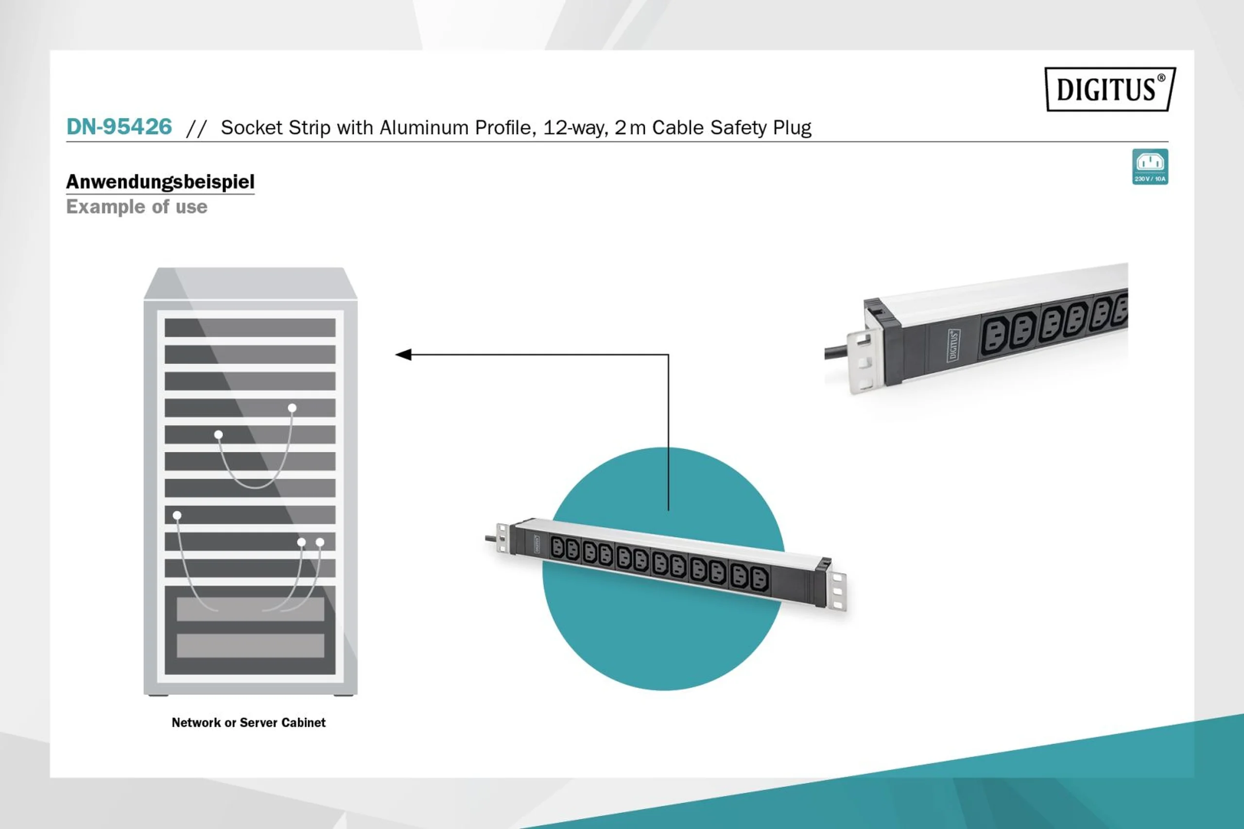 Digitus Socket strip with aluminum profile 12-way 2m cable safety plug Black
