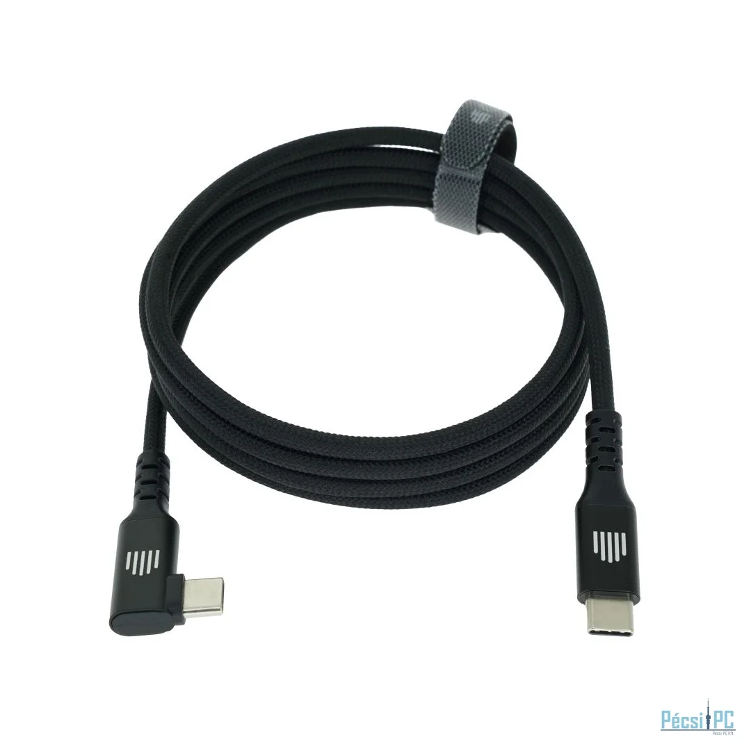 USB kábel, USB-C, USB-C, USB2.0, Male/Male, 1,25m, Black, Töltő és adatkábel, 90 fokos, Szövetborítás