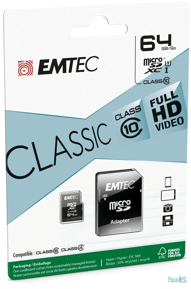 Emtec 64GB microSDXC Classic Class 10 U1 + adapterrel
