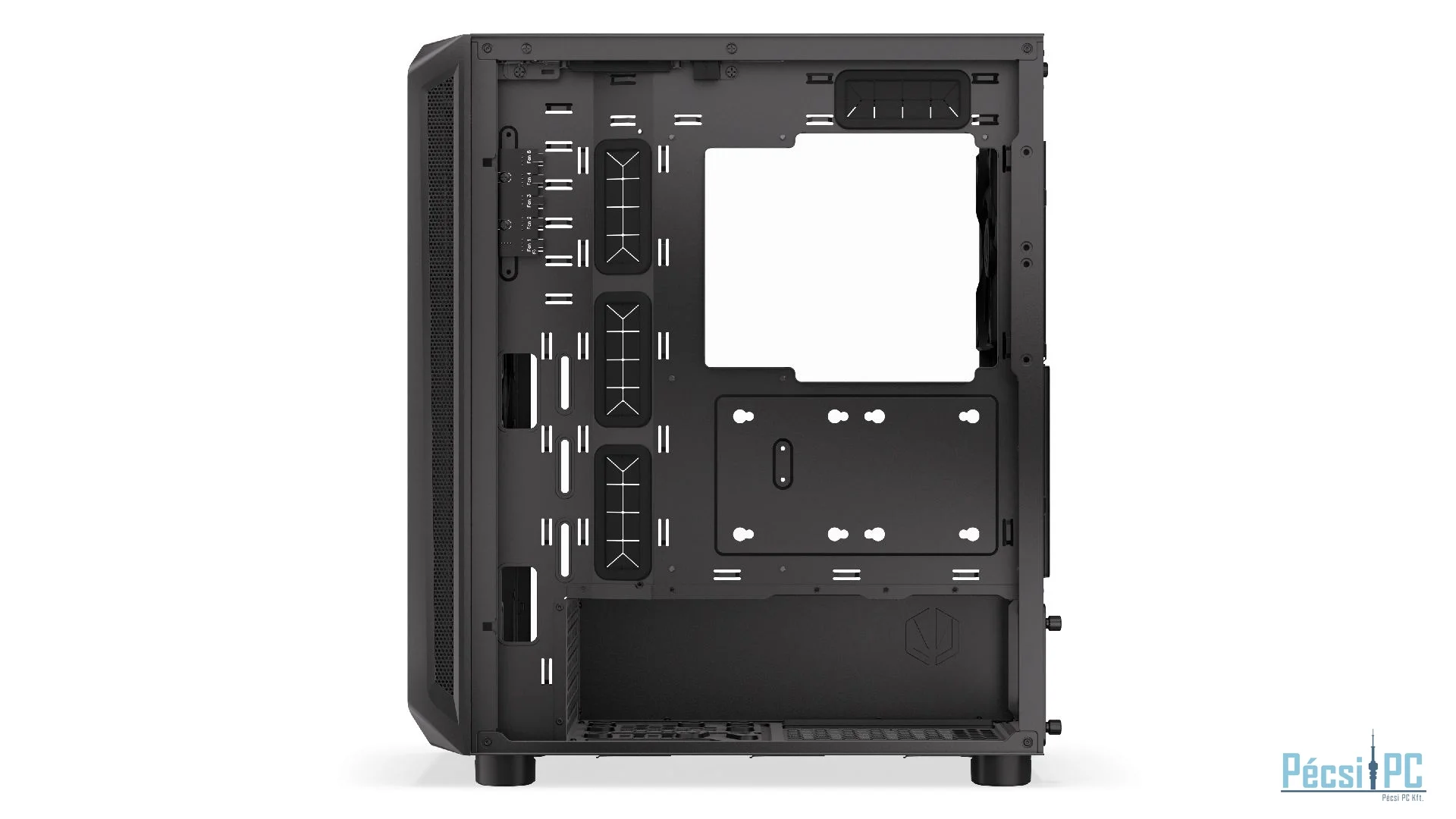 ATX, Black, 1x3,5", 6x2,5", 2xUSB3.2, 1xUSB Type-C, Audio, Táp nélkül, 486x228x429mm, Ventilátor:2x14cm, Tempered glass window