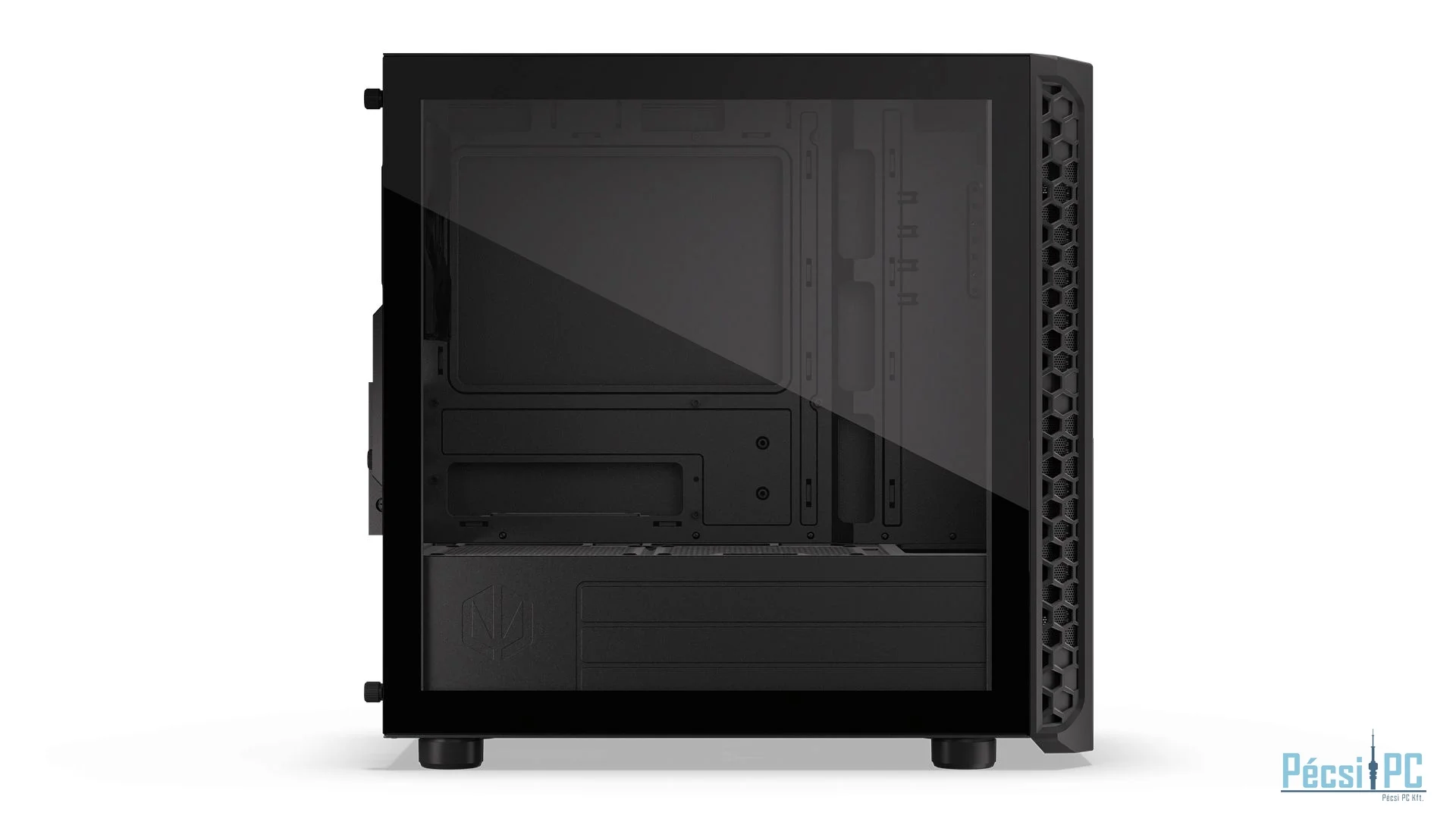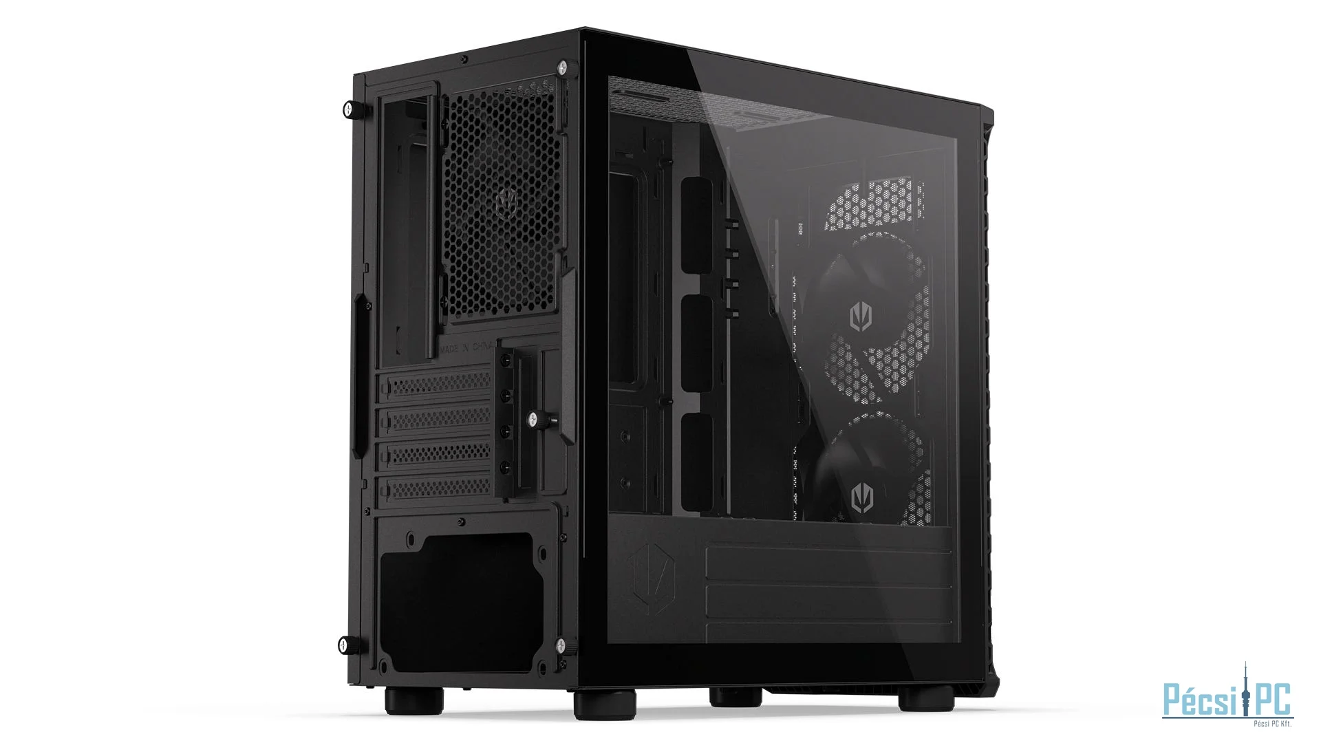 microATX, Black, 2x3,5", 2x2,5", 2xUSB3.2, 1xUSB Type-C, Audio, Táp nélkül, 401x387x205mm, Ventilátor:3x12cm, Tempered glass window