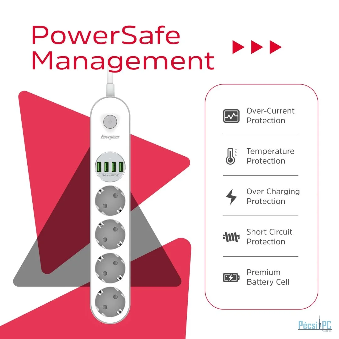 Energizer EPB2500W00EU Hálózati Elosztó Kapcsolóval 4DIN 2m White