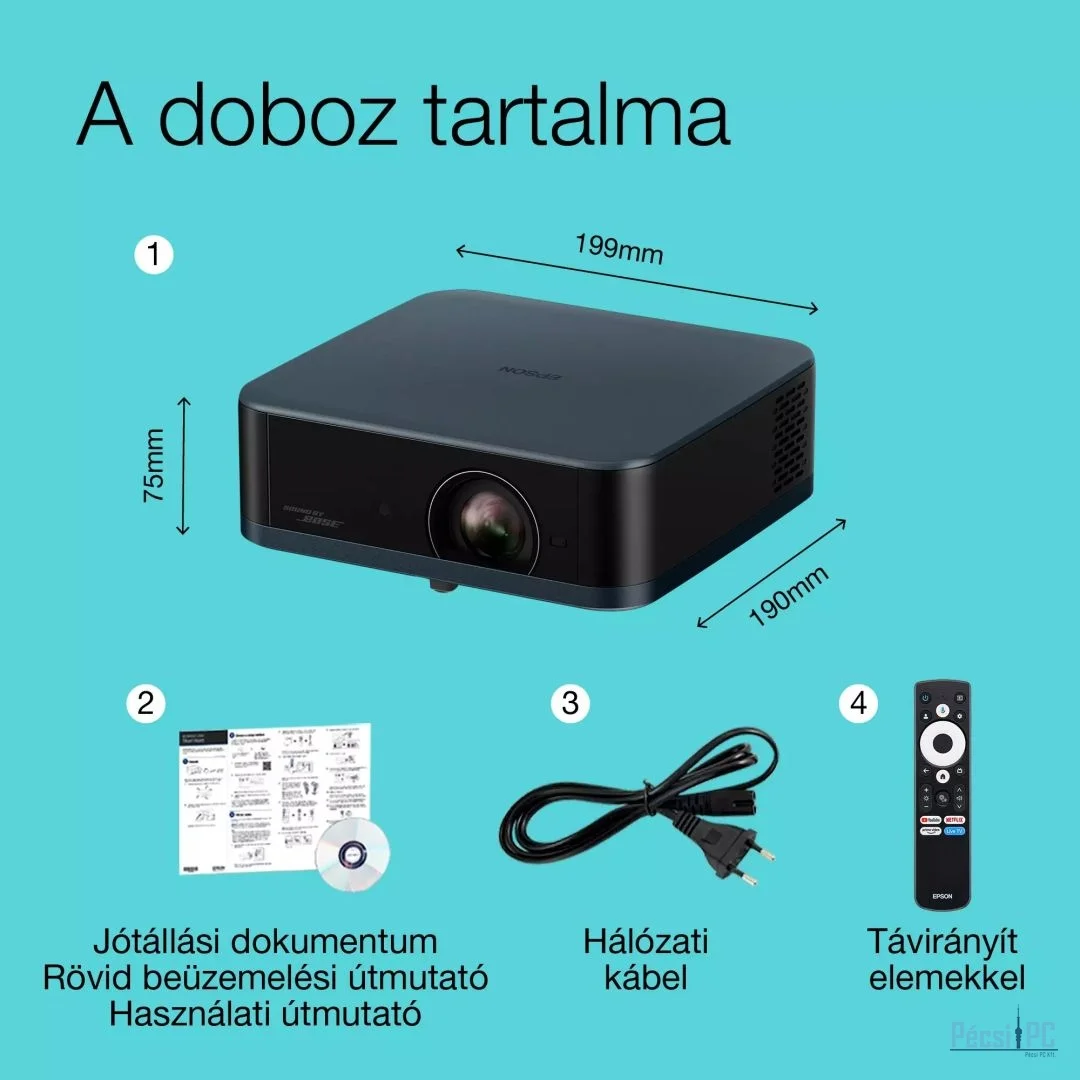 3LCD, 3840x2160, 700ANSI Lumen, 5M:1, 199x190x75mm, 1,6kg, Bluetooth, WiFi