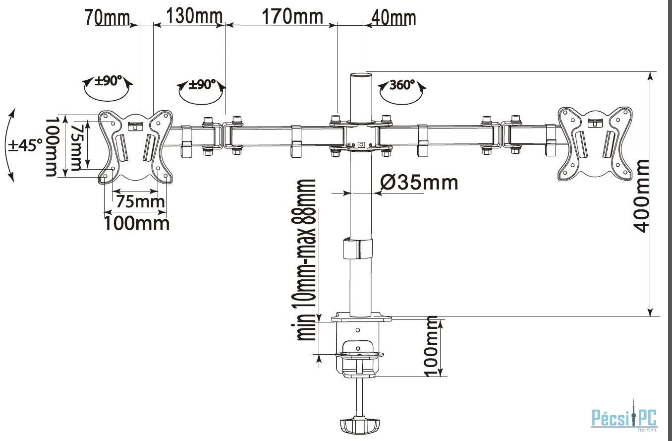 EQuip 13"-27" Articulating Dual Monitor Desk Mount Bracket Black