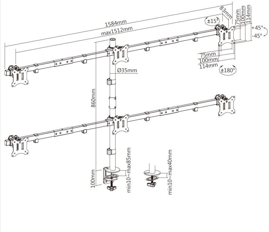 EQuip 17"-32" Articulating 6 Monitor Desk Mount Bracket Black