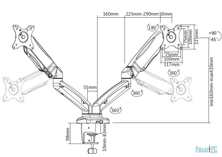 EQuip 650121 17"-32" Interactive Dual Monitor Desk Mount Bracket