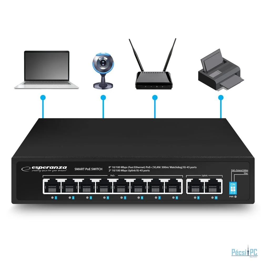 10xLAN port, 10x10/100Mbit LAN, PoE port 8, Uplink 100 Mbps