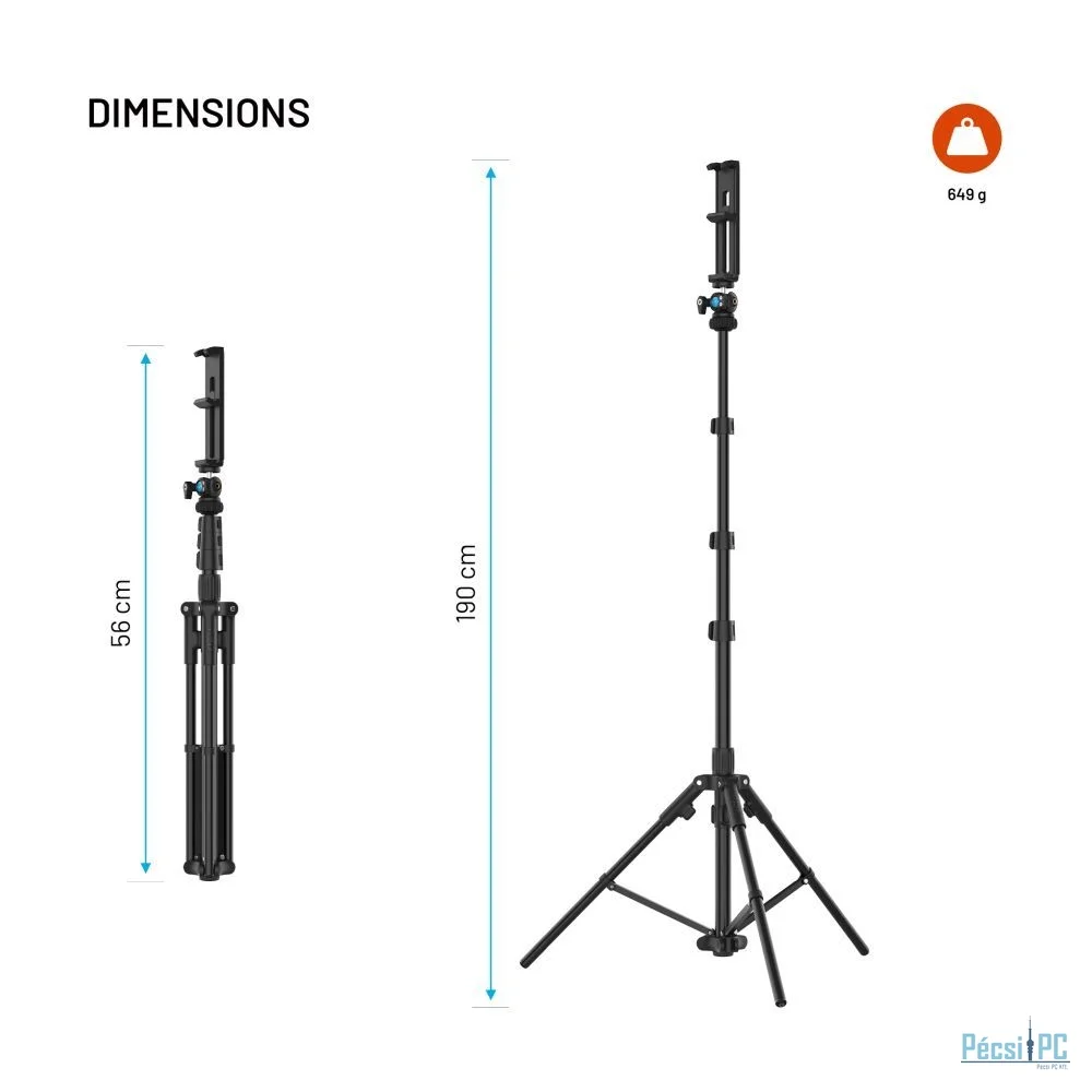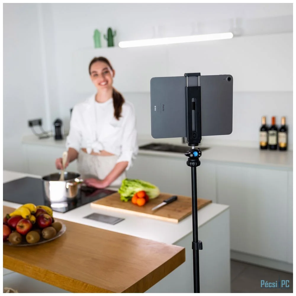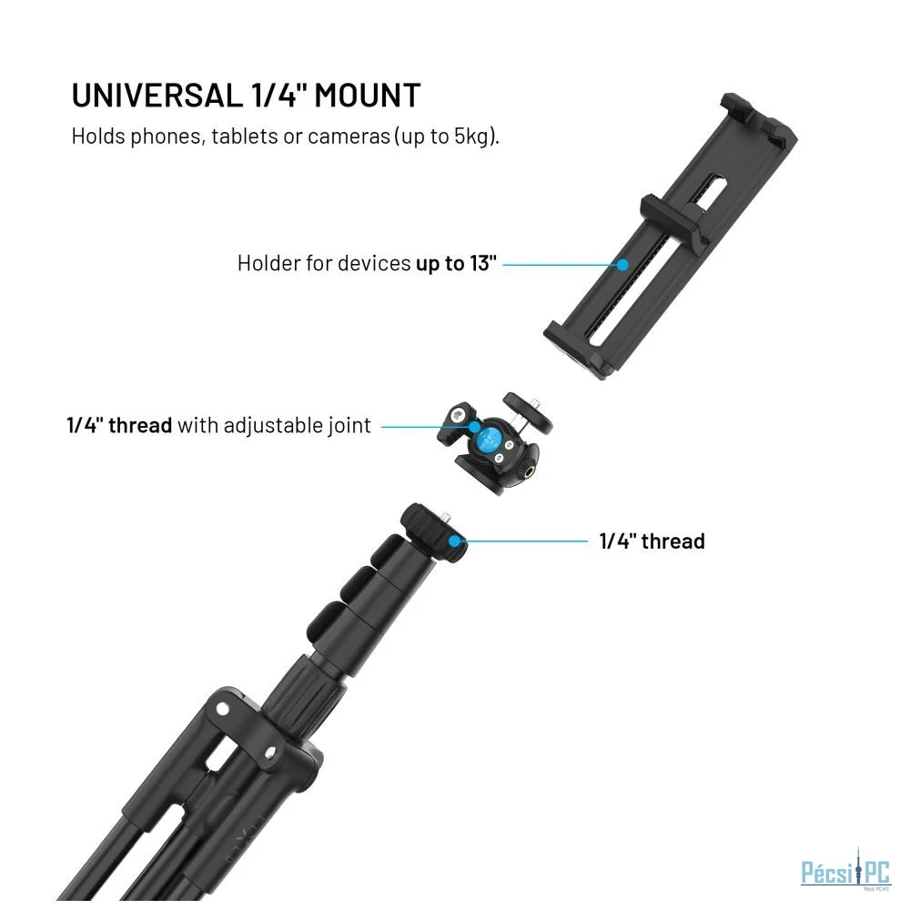 A FIXED Creator állvány ideális választás minden olyan tartalomkészítő számára, aki megbízható partnert keres a fényképezéshez vagy videók készítéséhez. Az univerzális 1/4"-os menet segítségével könnyedén rögzíthető fényképezőgép, akciókamera vagy LED-lámpa, míg a csúszó bilincsekkel ellátott tartóra könnyedén fel lehet szerelni akár 13"-os telefonokat és táblagépeket is. A négyrészes állványszerkezet akár 190 cm magasságig is beállítható, a kiválasztott pozíciót pedig egy praktikus meghúzási mechanizmussal lehet biztonságosan rögzíteni. A pontos szögbeállításhoz forgócsuklót használnak, amelynek köszönhetően a készülék vízszintesen és függőlegesen is pozícionálható. Az állványlábak egyetlen földre csapással kibonthatók, ami gyors és kényelmes használatra való előkészítést biztosít. A tartós alumíniumötvözet akár 5 kg-os terhelést is kibír, összecsukott állapotban pedig az állvány kompakt 56 cm-es. A csomag tartalmaz egy praktikus hordtáskát is a könnyű szállításhoz, amelynek köszönhetően az állvány mindig kéznél lehet.