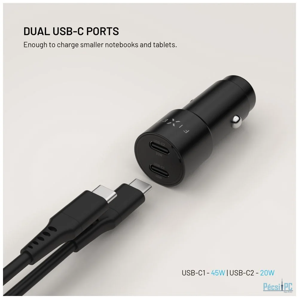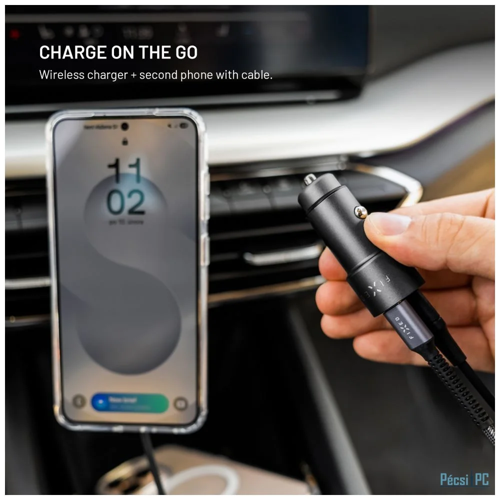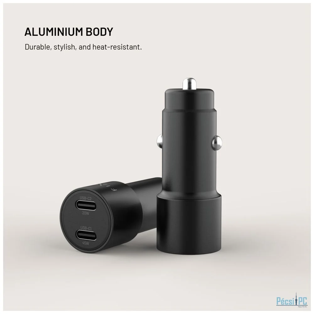 A FIXED autós töltő erőteljes és biztonságos, akár 65 W-os töltést biztosít minden eszközének vezetés közben. A két, 45W és 20W kimeneti teljesítményű USB-C portnak köszönhetően egyidejűleg tölthet egy telefont, egy táblagépet, vagy akár egy laptop töltéséhez is elegendő energiát biztosít. A Power Delivery 3.0 támogatásának köszönhetően a gyors töltés még rövid utak során is biztosított. A töltőt személygépkocsik és teherautók szivargyújtó aljzatába vagy lakókocsikban való használatra tervezték. A kompakt méretek biztosítják, hogy a töltő feltűnésmentes, nem áll útban, és tartós alumínium teste természetesen illeszkedik az autó dizájnjához. Akár munkába, akár hétvégére, akár fél Európán át vezet, a FIXED autós töltővel soha nem fog kifogyni az áramból.
