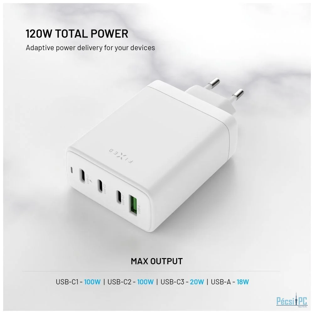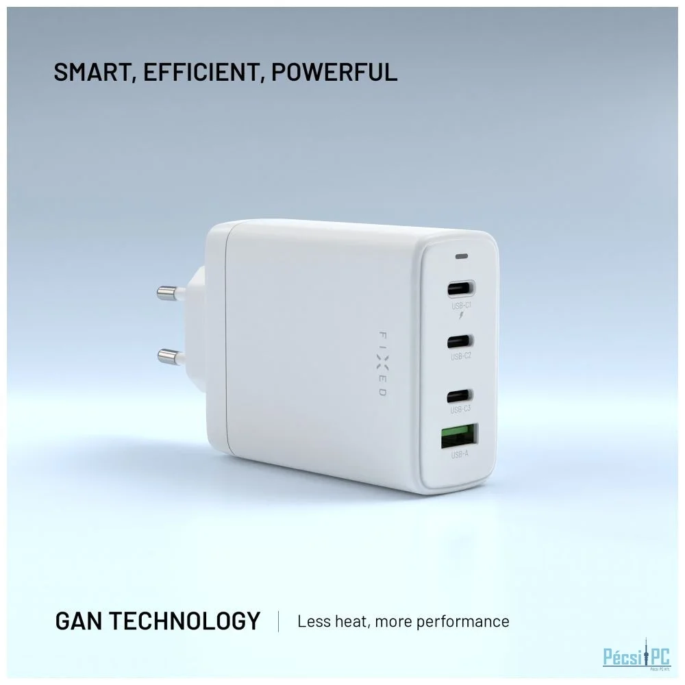 A nagy teljesítményű, mégis kompakt FIXED hálózati adapter ideális minden eszköz univerzális töltésére, akár 120 W összteljesítménnyel. A fejlett GaN technológiának köszönhetően gyors töltést biztosít túlmelegedés nélkül, így növeli a hatékonyságot. Ugyanakkor lehetővé teszi a méretek kompakt méretűre csökkentését a hasonló teljesítményű hagyományos töltőkhöz képest. Négy porttal rendelkezik - három USB-C és egy USB-A porttal, amelyekkel egyszerre akár négy készüléket is tölthetsz. A fő USB-C1 port támogatja a Power Delivery 3.0-t, és nagy, akár 100 W-os teljesítményt nyújt, ami biztosítja a nagy teljesítményű laptopok és más energiaigényes eszközök megbízható és gyors töltését. Akár otthon, akár az irodában vagy útközben, a FIXED GaN 120 W megbízható és gyors töltést biztosít minden eszközének egyetlen kompakt adapterrel.