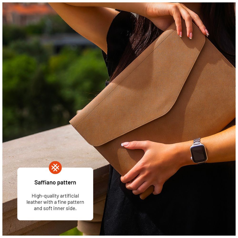 Az elegáns FIXED Siena tok a laptop vagy táblagép védelmének és a stílusos kiegészítőnek tökéletes kombinációja. A puha belsővel ellátott főzseb megbízható védelmet nyújt a behelyezett eszköznek, míg a kisebb elülső zseb ideális notebook, pad vagy dokumentumok számára. A tok felső részén egy praktikus nyílás található, ahol tollat vagy ceruzát helyezhet el. A biztonságos lezárás érdekében a tok mágnessel van ellátva, amely biztosítja, hogy a tárgyak a helyükön maradjanak. Minden egyes darab kézzel készül Prostejov-i műhelyünkben kiváló minőségű műbőrből, szafiano mintával, amelyet átlós sraffozás jellemez. Az anyag így ellenállóvá válik a karcolásokkal vagy egyéb sérülésekkel szemben, ugyanakkor nagyon kellemes tapintású. Fejezze ki egyedi stílusát egy divatos színű, praktikus táskával, amely feldobja a mindennapi tevékenységeket.