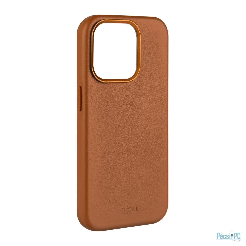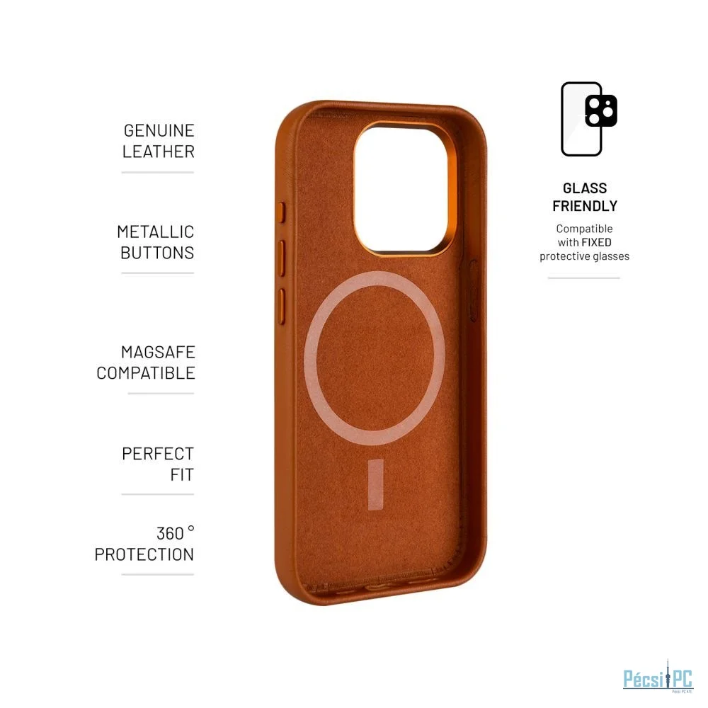 FIXED MagLeather valódi bőrtok, MagSafe támogatással iPhone 15-höz, barna